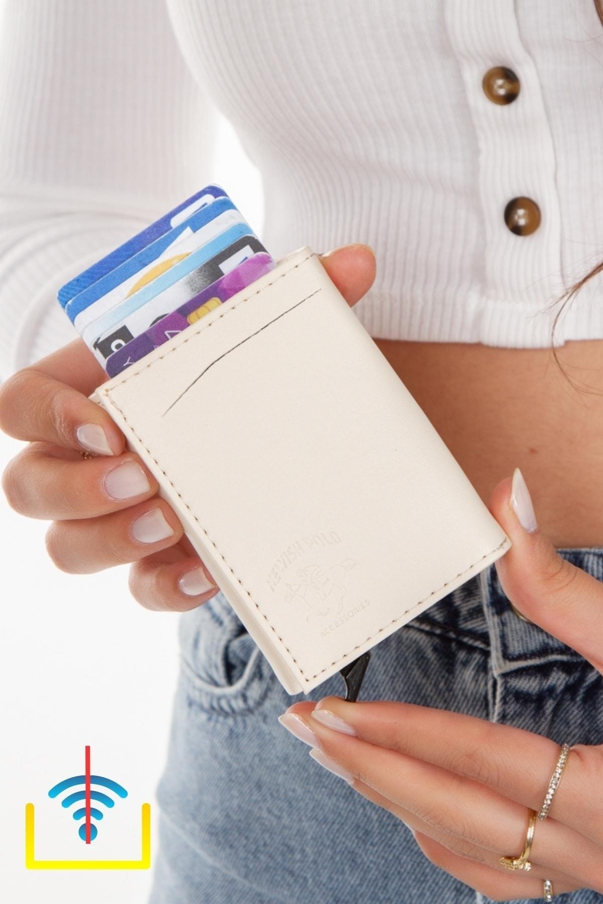 Adelina Bags Bézs alap alumínium mechanikus automata csúszó kártyatartó pénztárca