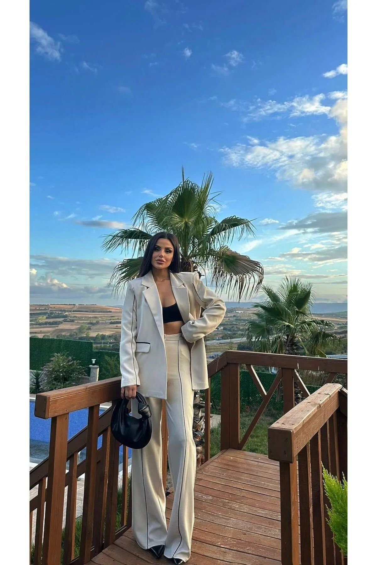 Bella Breeze Női Stripe részletes blézerkabát Palazzo nadrágkosztüm