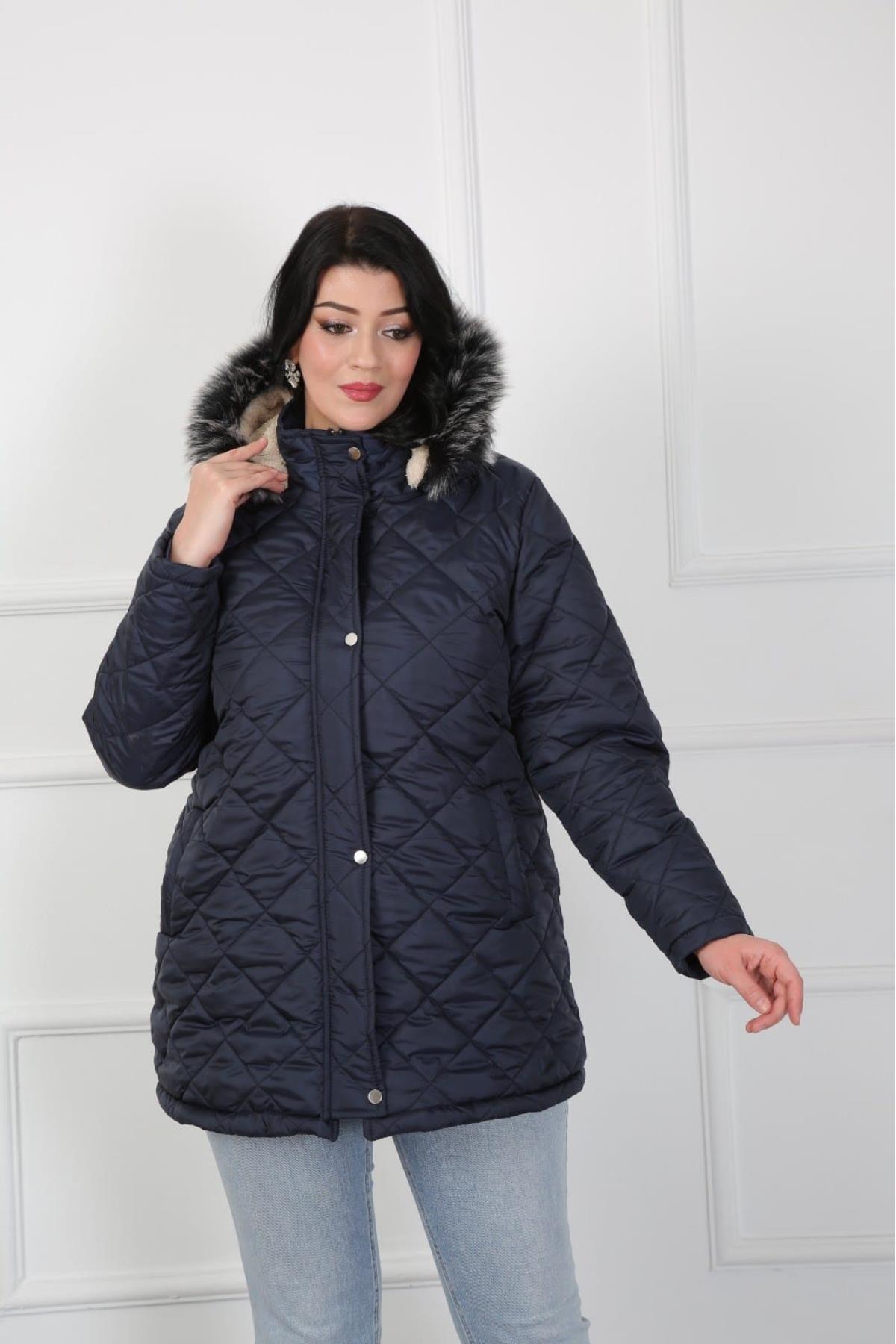 By Alba Collection Női sötétkék gyémánt mintás felfújható steppelt nagy méretű kabát jellemzők