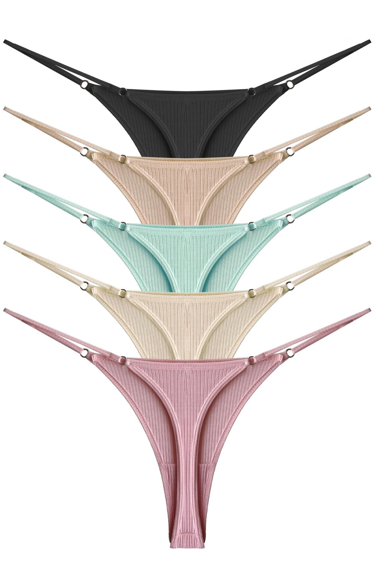 Cottonhill Állítható elasztikus pamut és lycra twill női tangabugyi - 5 db-os csomag