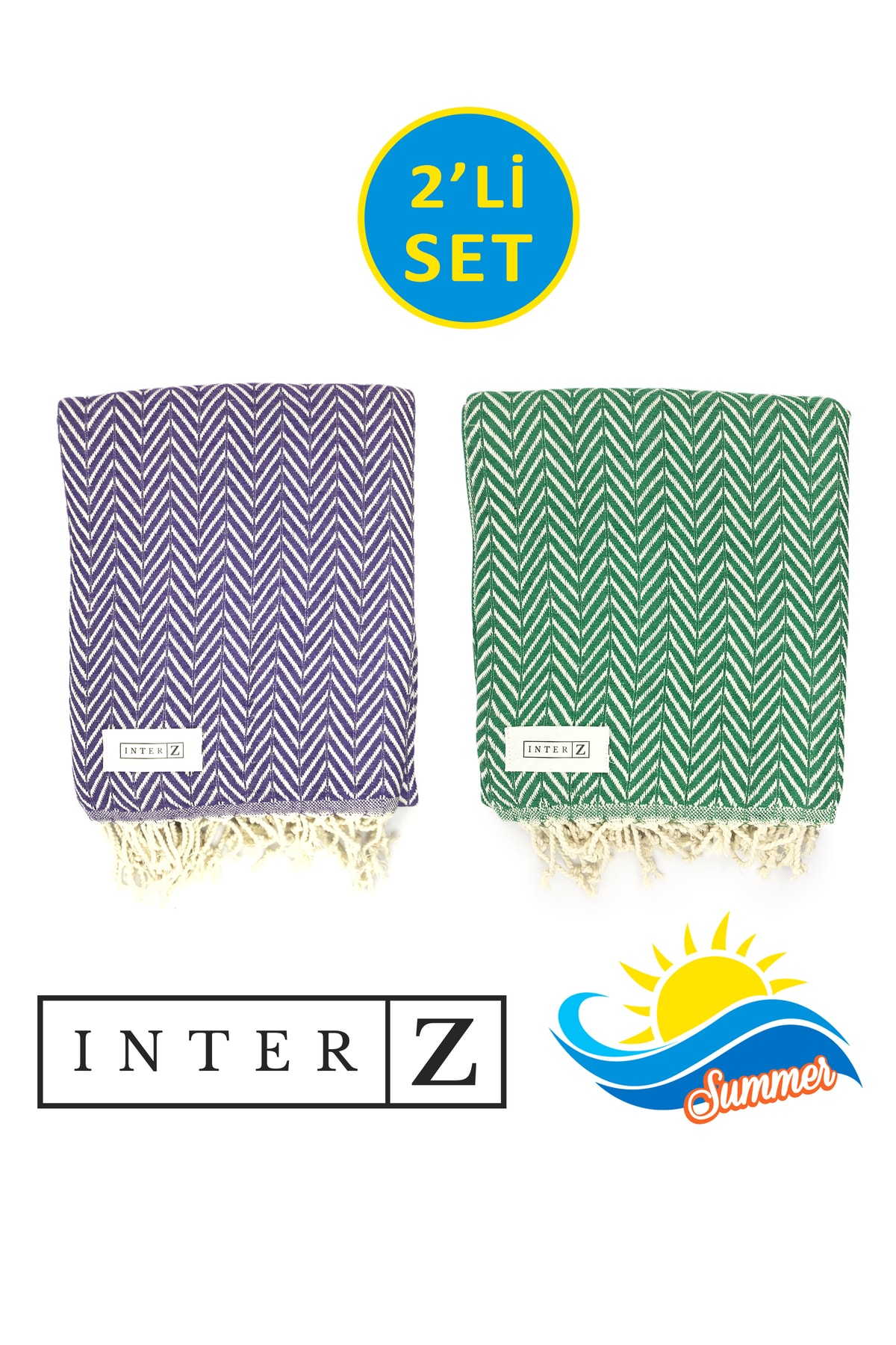 INTER Z 2 db-os Pestemal strandtörölköző készlet 100% pamut Xxl 100x180cm Marmaris lila zöld