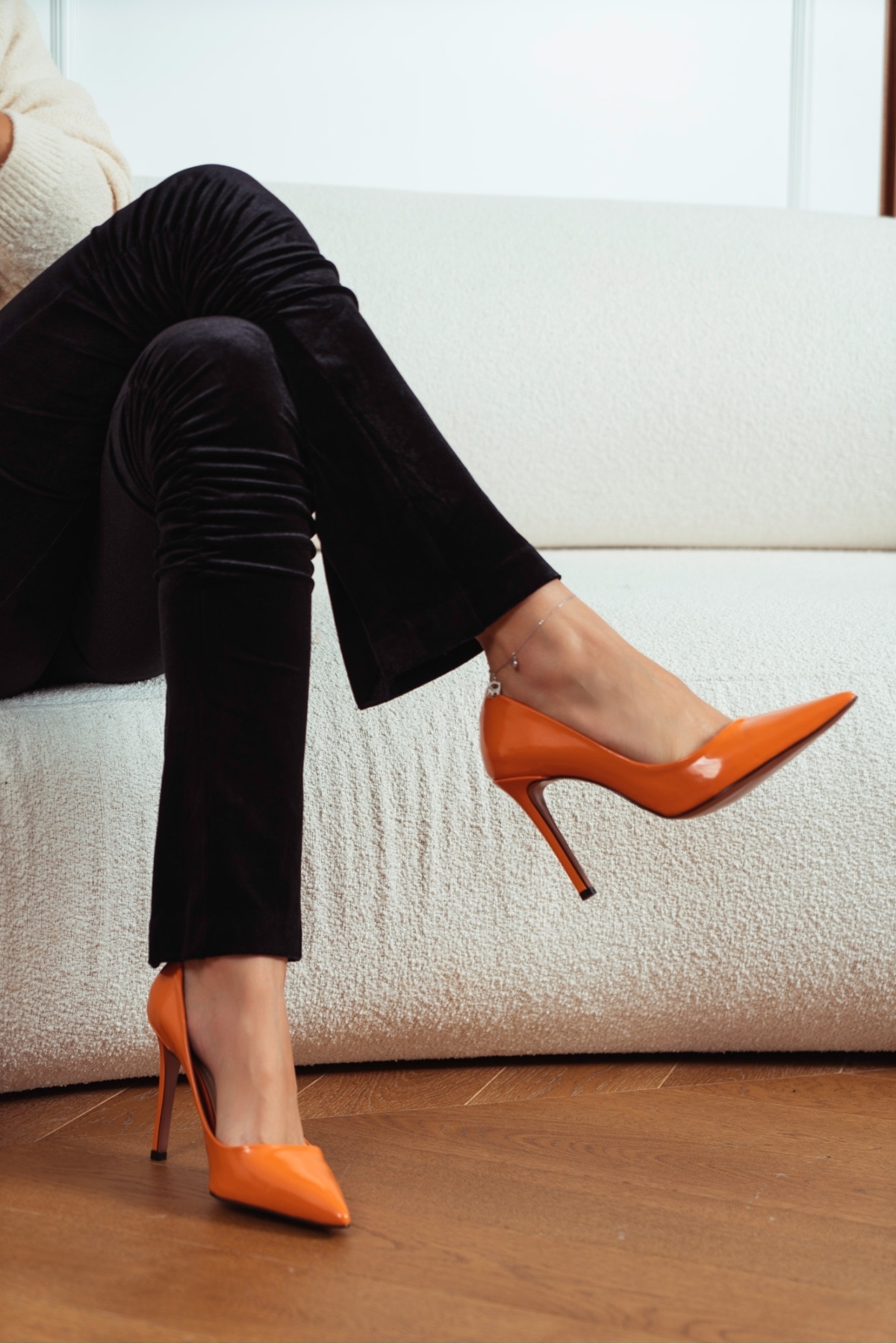 NİŞANTAŞI SHOES Vanessa narancssárga lakkbőr hegyes orrú női tűsarkú jellemzők