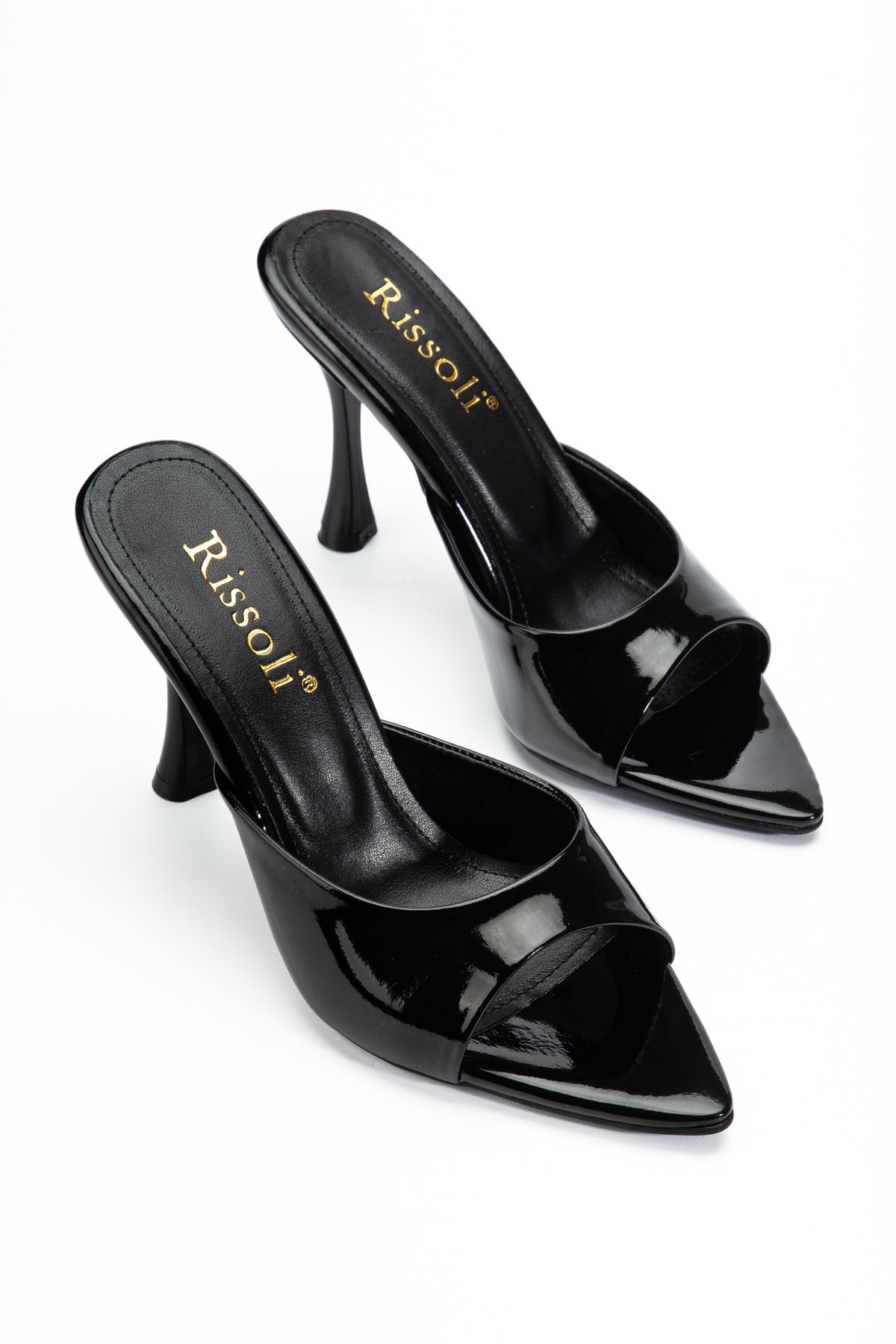 RİSSOLİ Rissoli női fekete hegyes orrú sarkú szandál jellemzők