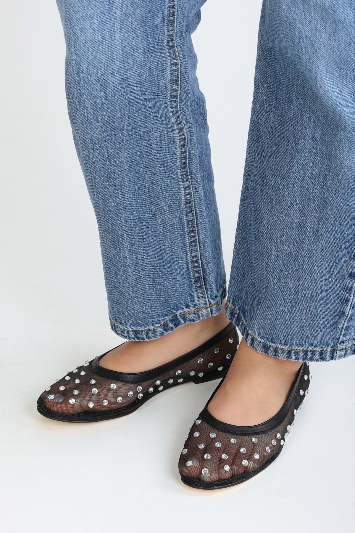 Shoeberry Fekete Danty Mesh köves női napi balerinák