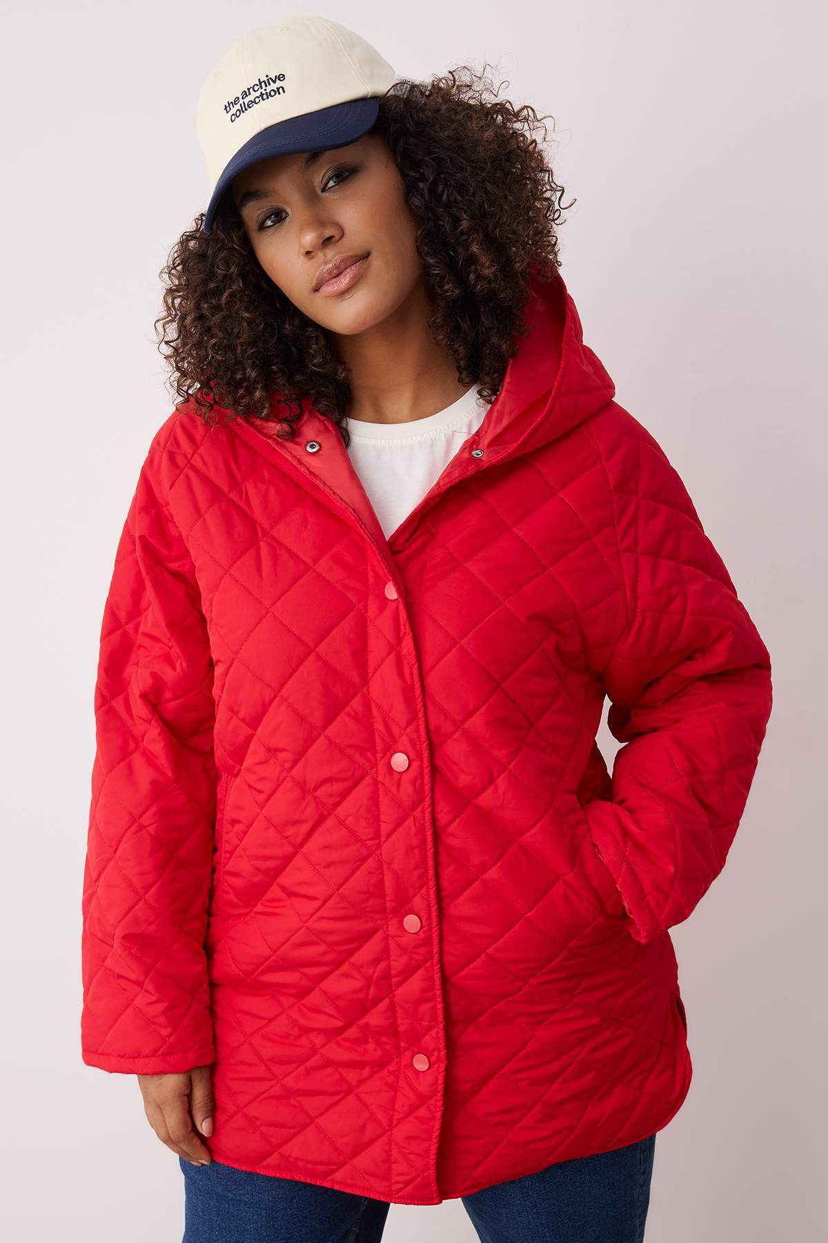 Trendyol Curve Piros normál szabású kapucnis vízlepergető steppelt nagy méretű kabátok TWOAW26AW00009