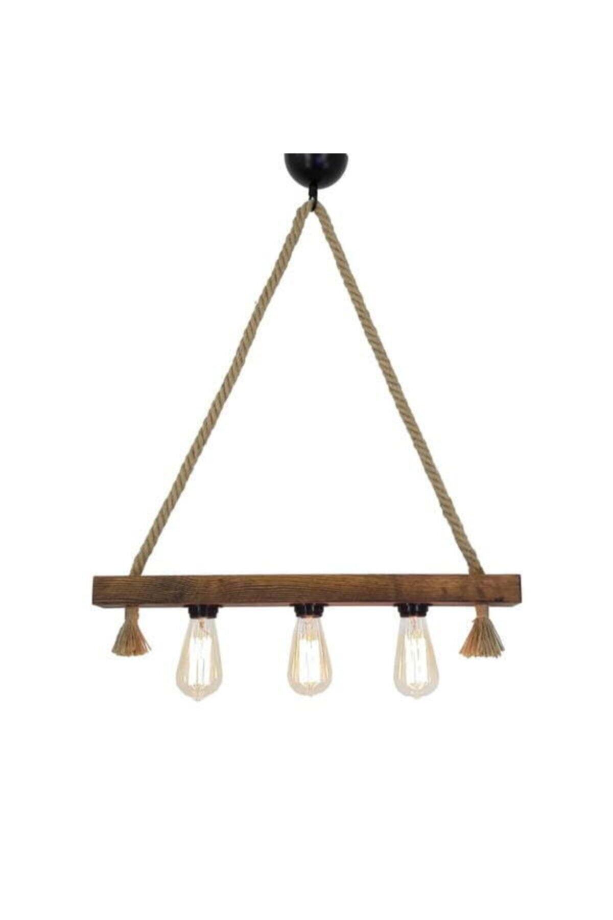 HÜMA Tasarım 3'lü Rustik Nigrum Halatlı Ahşap Avize