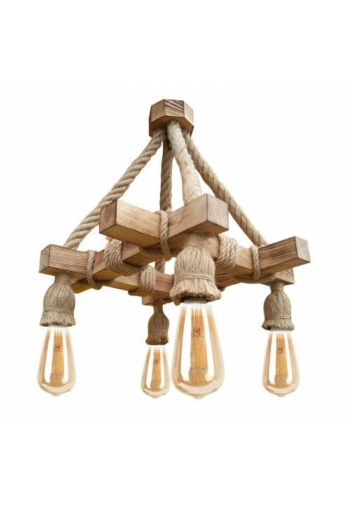 HÜMA Tasarım Ahşap Halatlı Rustik Salon Avize 4'lü