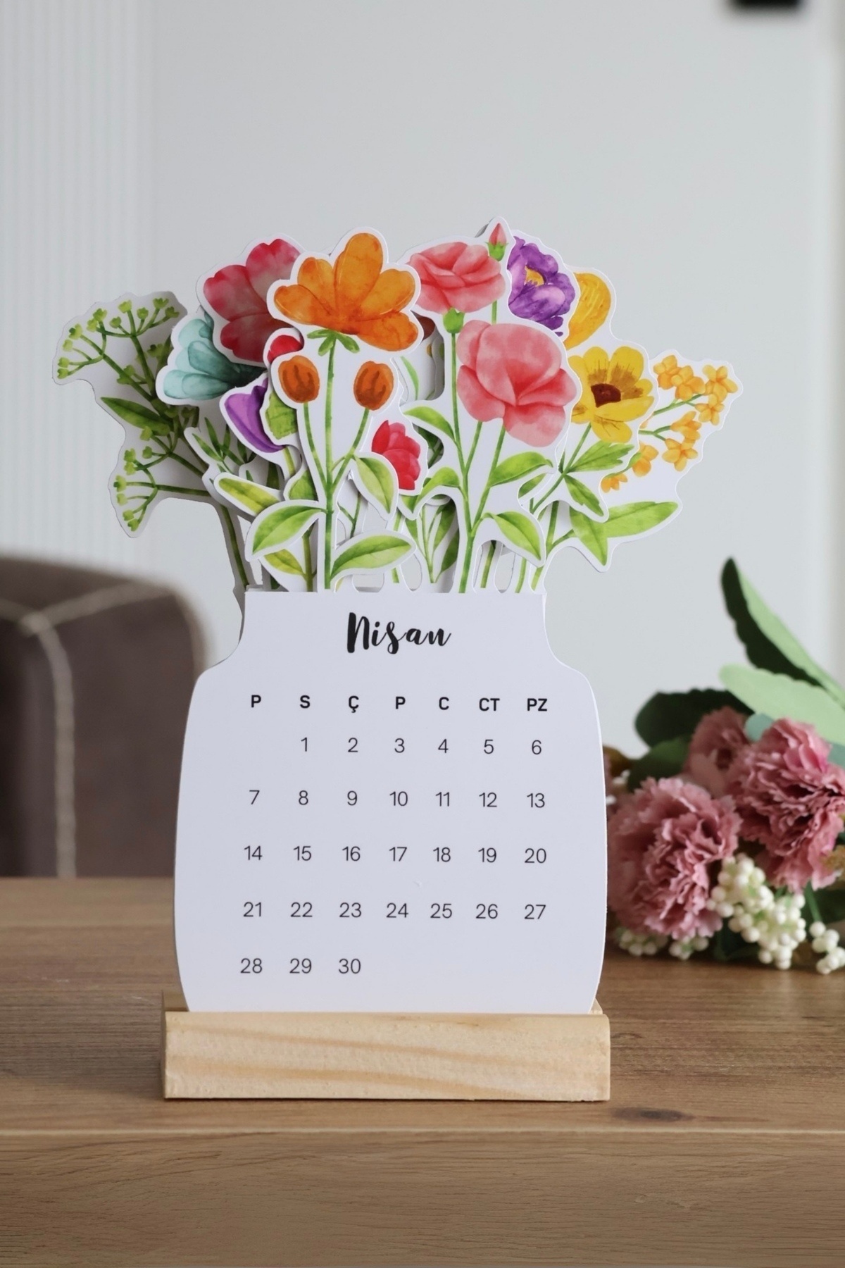 Hume Craft 2026 Çiçekli Takvim Özel Tasarım Masa Takvimi Vazodaki Çiçekler Öğretmenler Günü Hediyesi