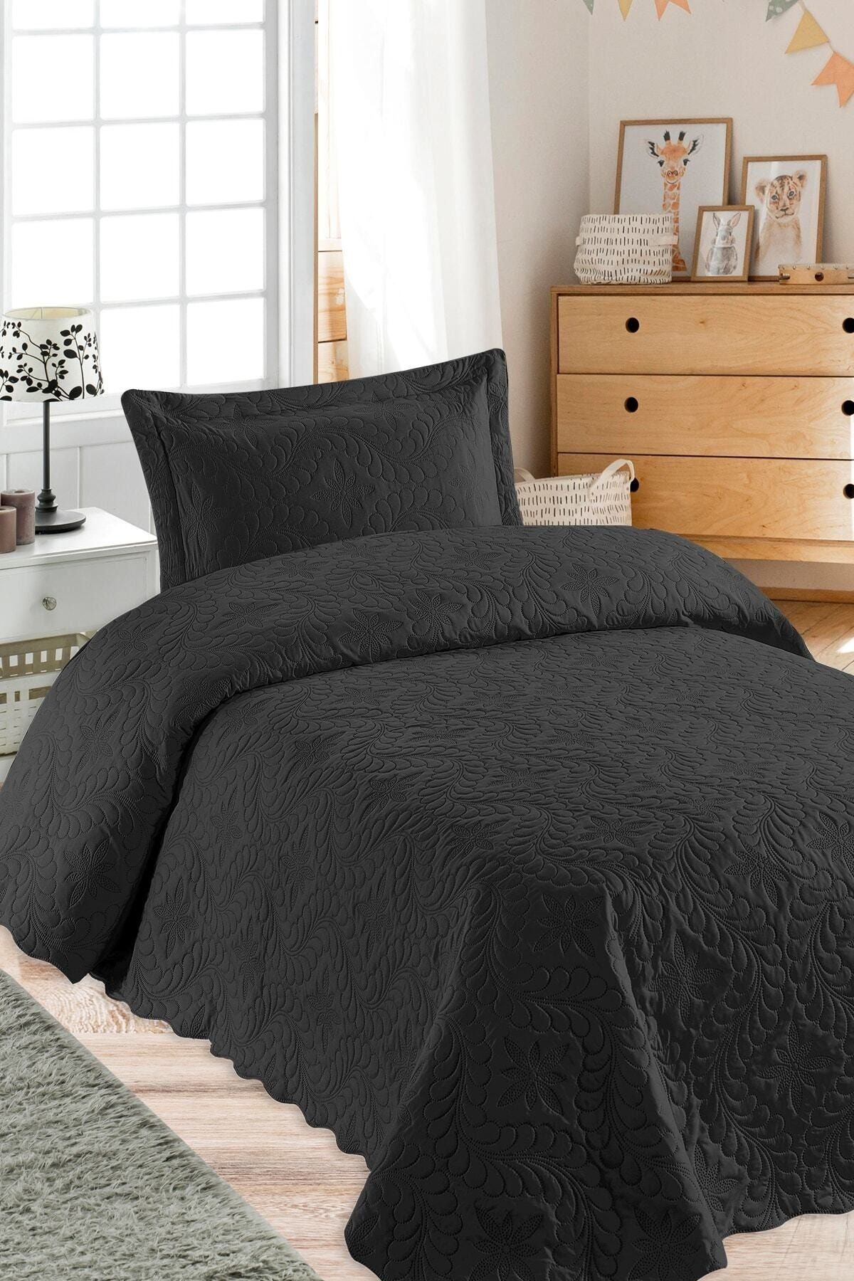 HUZUR ÇEYİZ Sarmaşık Düz Renk Tek Kişilik Microfiber Kapitone Yatak Örtüsü Takımı