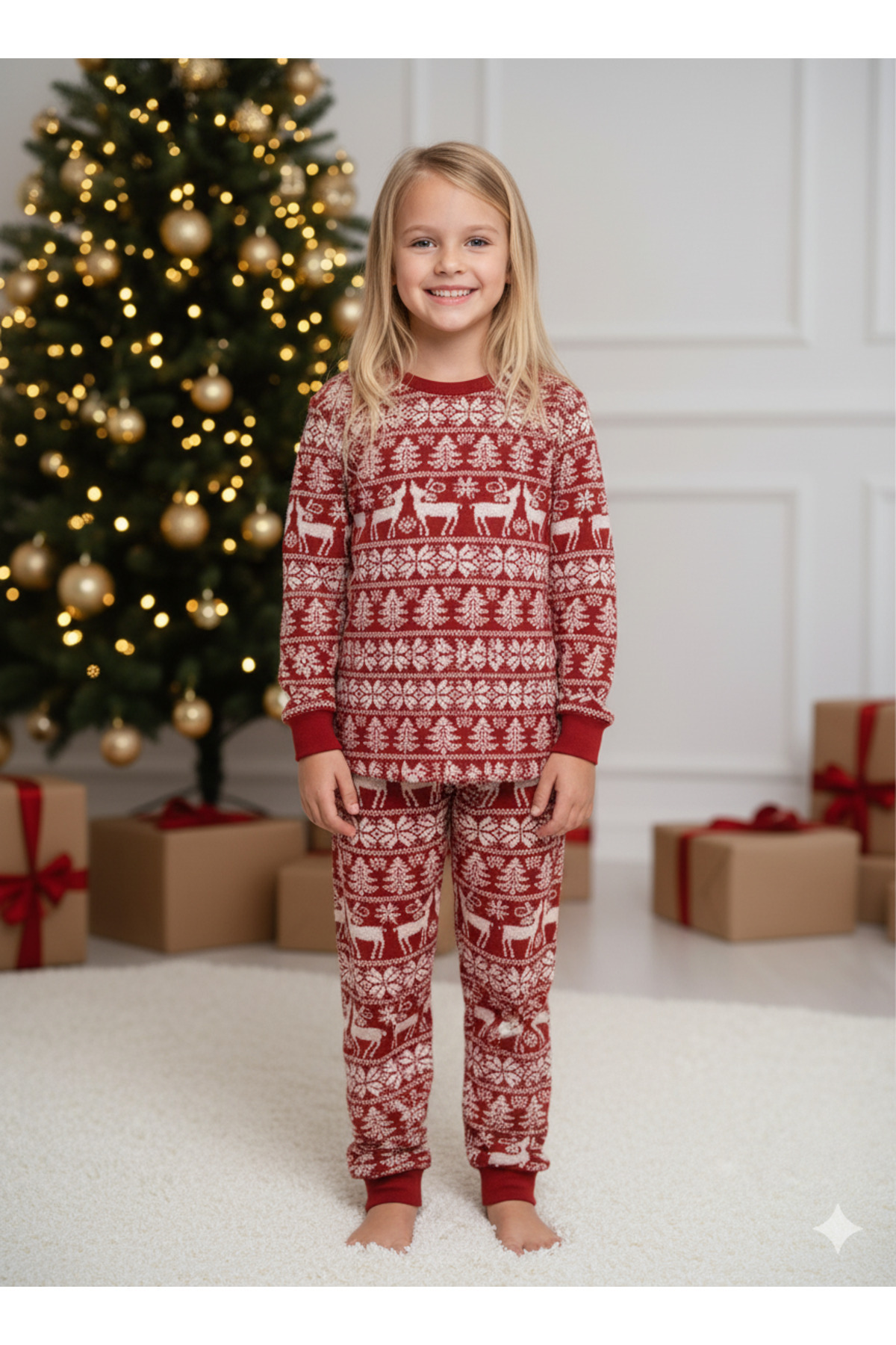 hvç HVC Çocuk Noel Yılbaşı Pijama Takımı (Unisex) – Kırmızı / Yılbaşı Desenli