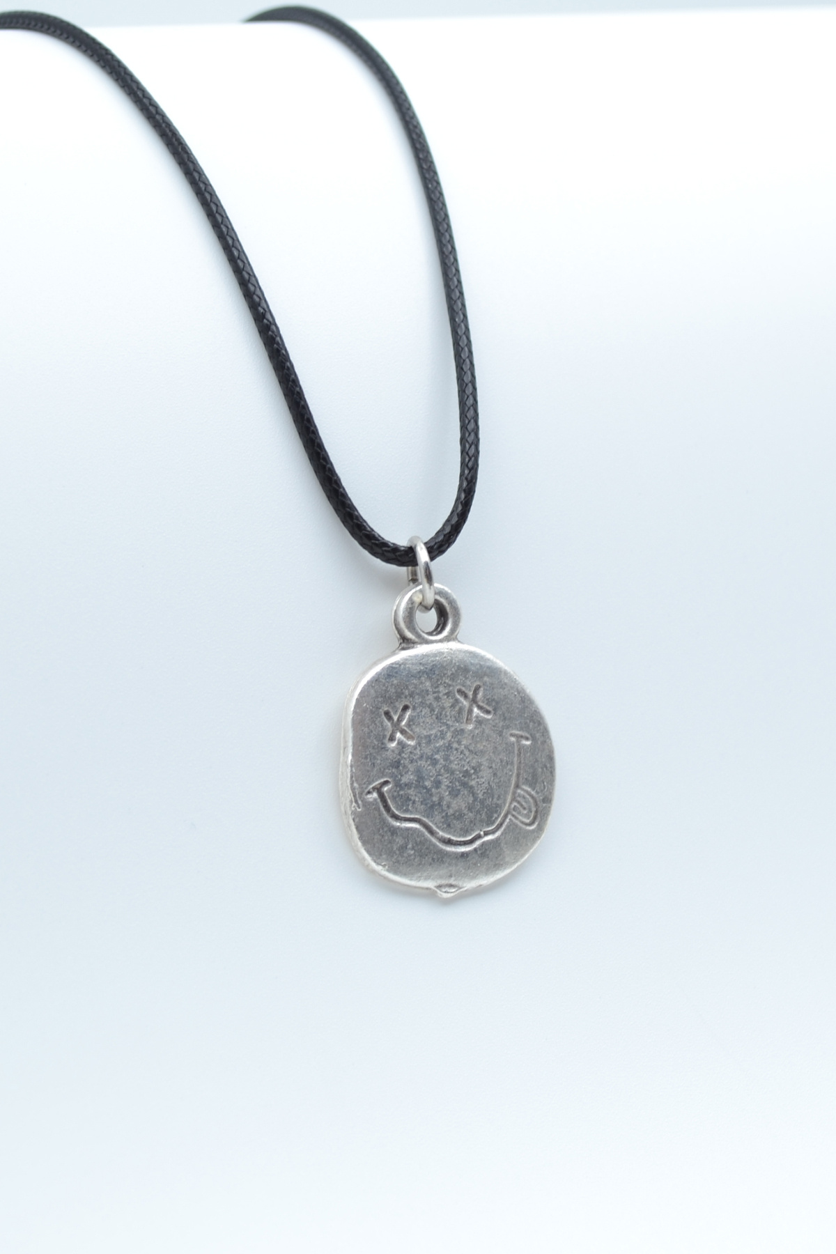 ıdr Nirvana - Gülen Yüz Gümüş Kaplama Deri İp Kolye