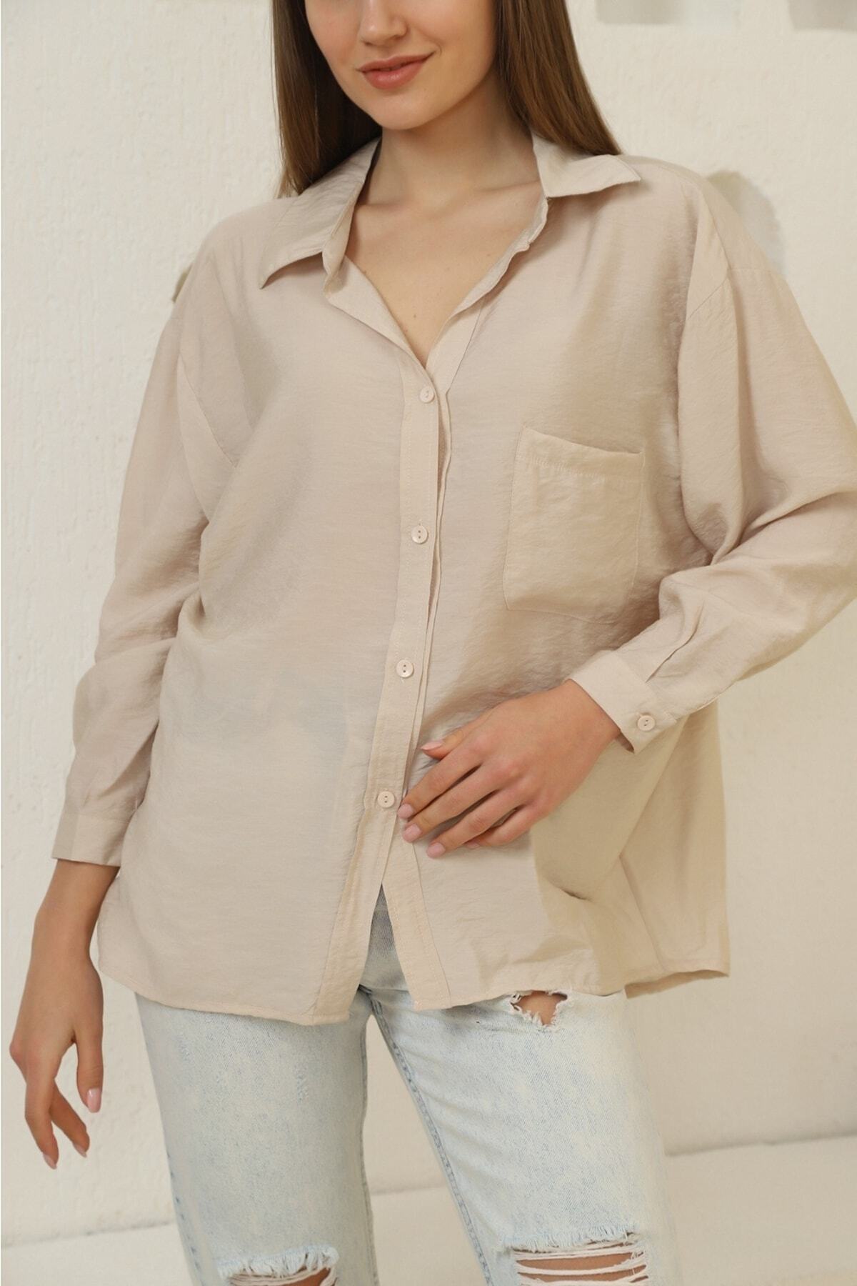 İgnites Kadın Bej Oversize Gömlek Özellikleri