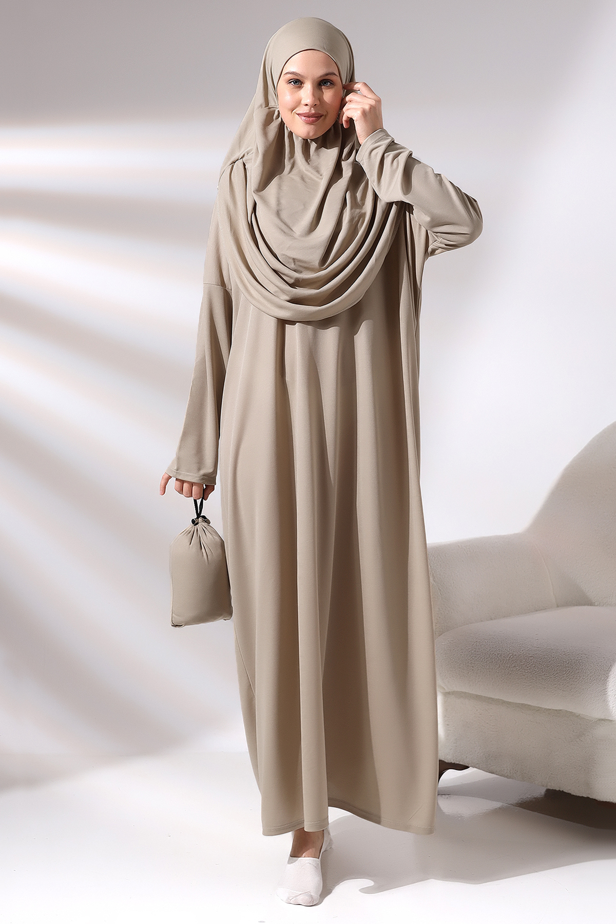 İhvan Vizon Tek Parça Çantalı Namaz Elbisesi