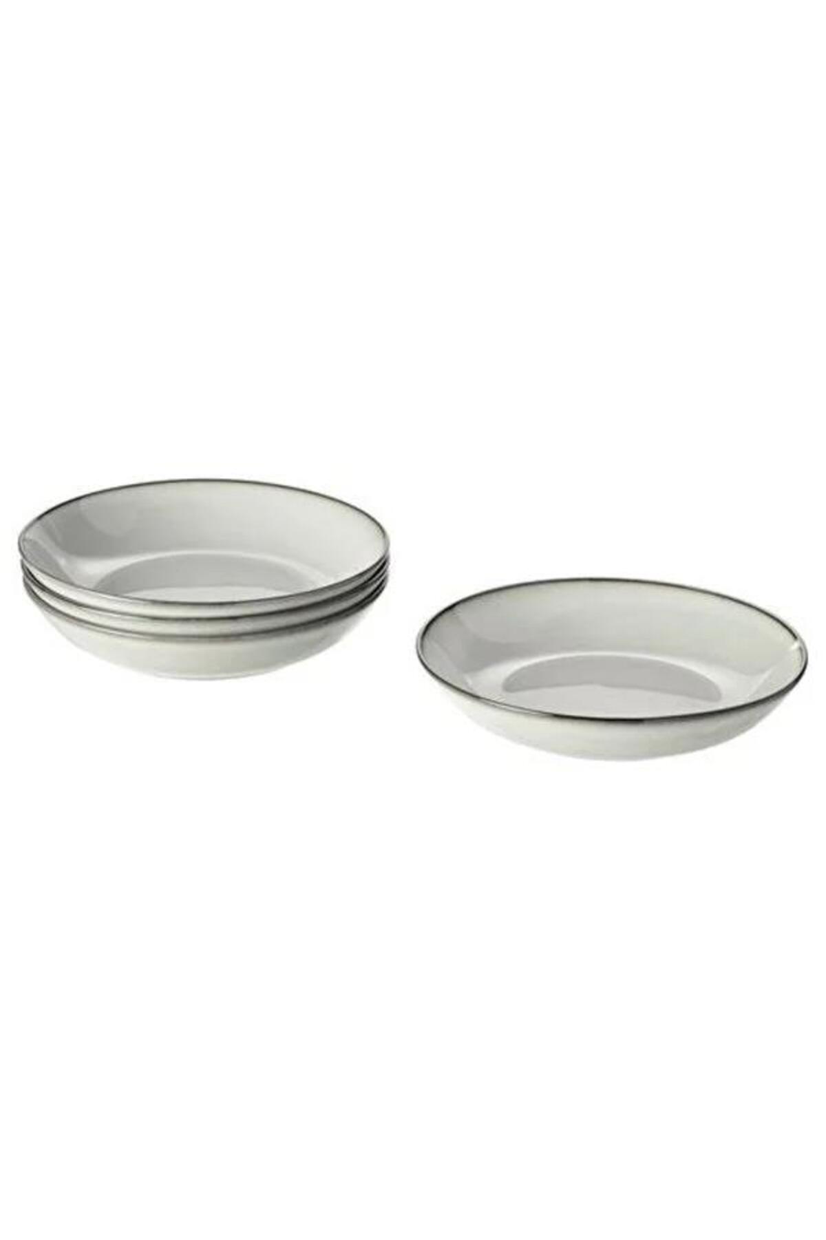 IKEA Gladelig Derin Tabak Seti, MeridyenDukkan Gri Renk 21 cm, 4 Adet Yemek Tabağı Kumlu Sır Yüzey