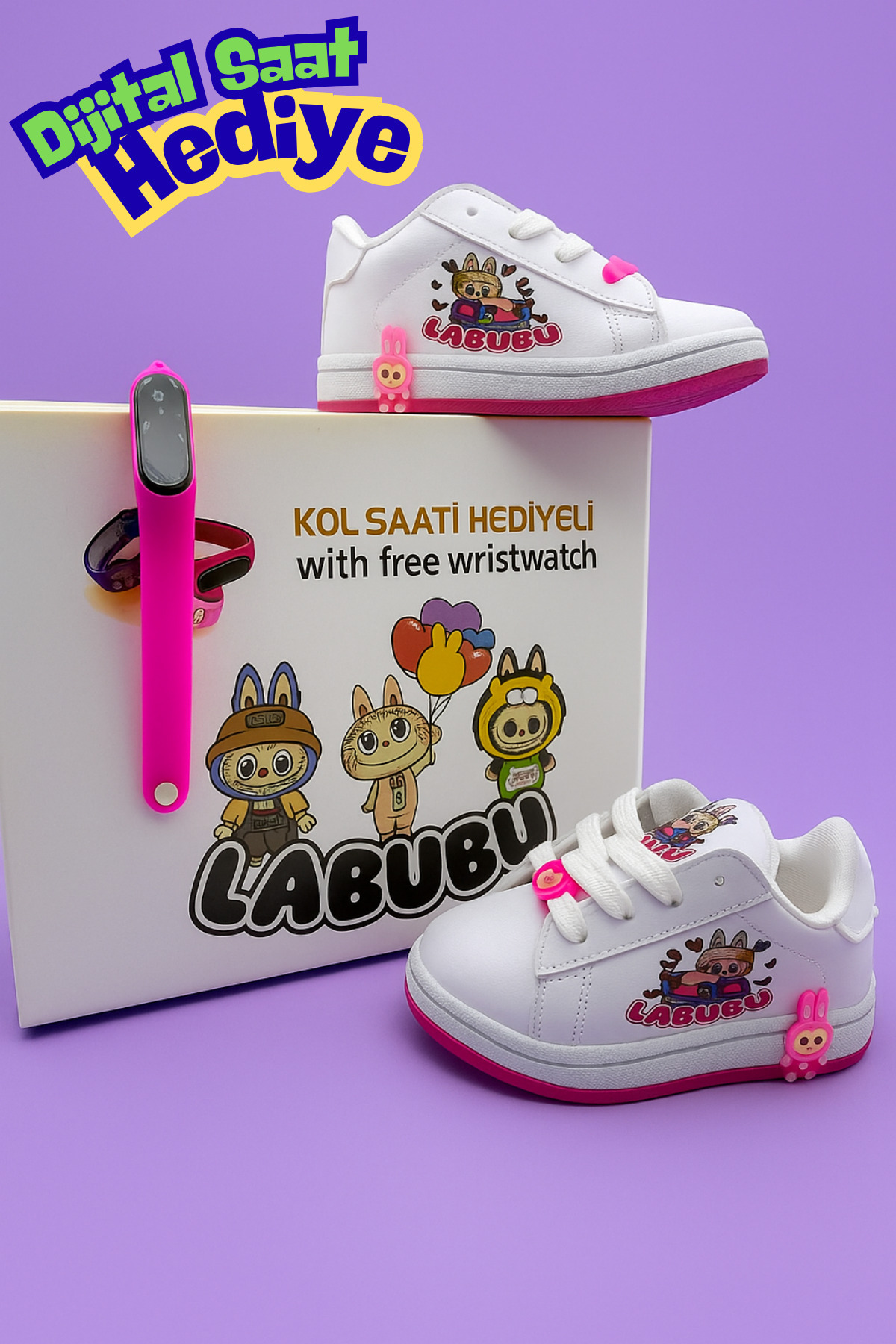 İMVULA Çocuk Ayakkabısı Labubu Desenli Dijital Saat Hediyeli Çocuk Ayakkabı