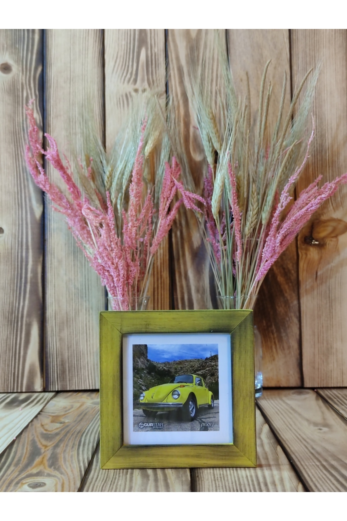 imzDepo Yakma Sarı Ahşap Çerçeve 10x10 Cm