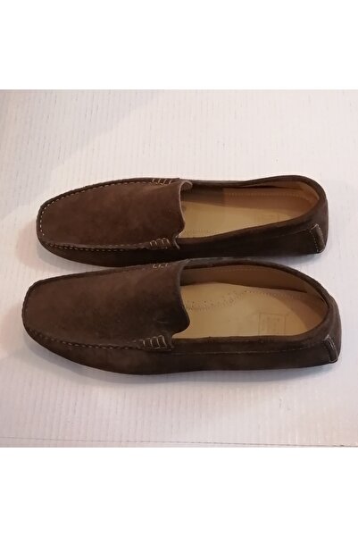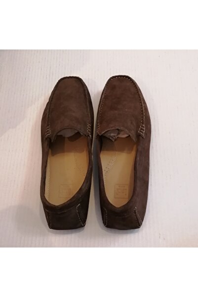İnci Uniseks Hakiki Deri Süet Kahve El Dikişli Yumuşak Krampon Kauçuk Tabanlı Loafer Ayakkabı