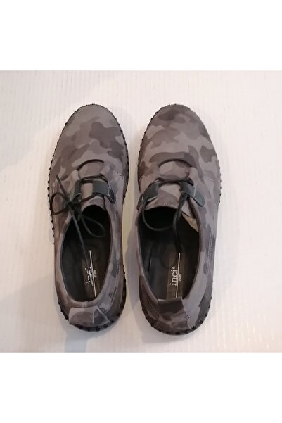 İnci Uniseks Hakiki Deri Süet Yarma Kamuflaj Desenli Gri Tonlarda Yumuşak Esnek Bağcıklı Ayakkabı