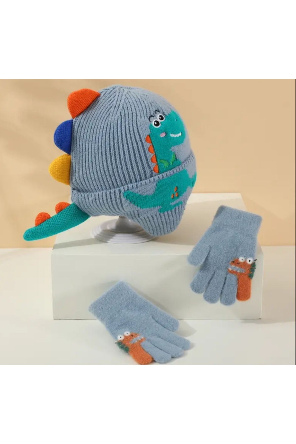 İNİTİUM Dinozorlu Bere ve Eldiven Takımı