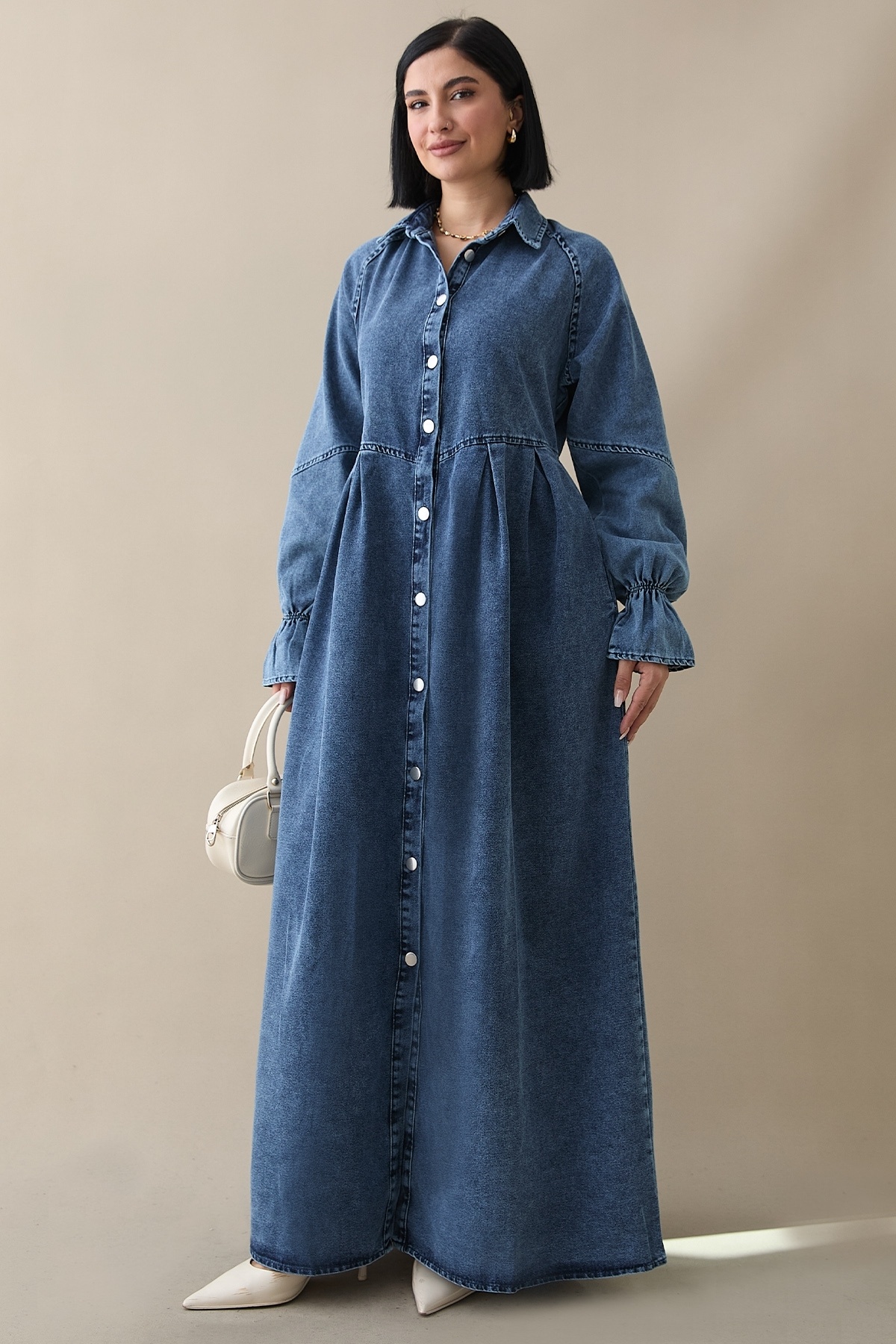 InStyle Kol Ucu Fırfırlı Kot Elbise