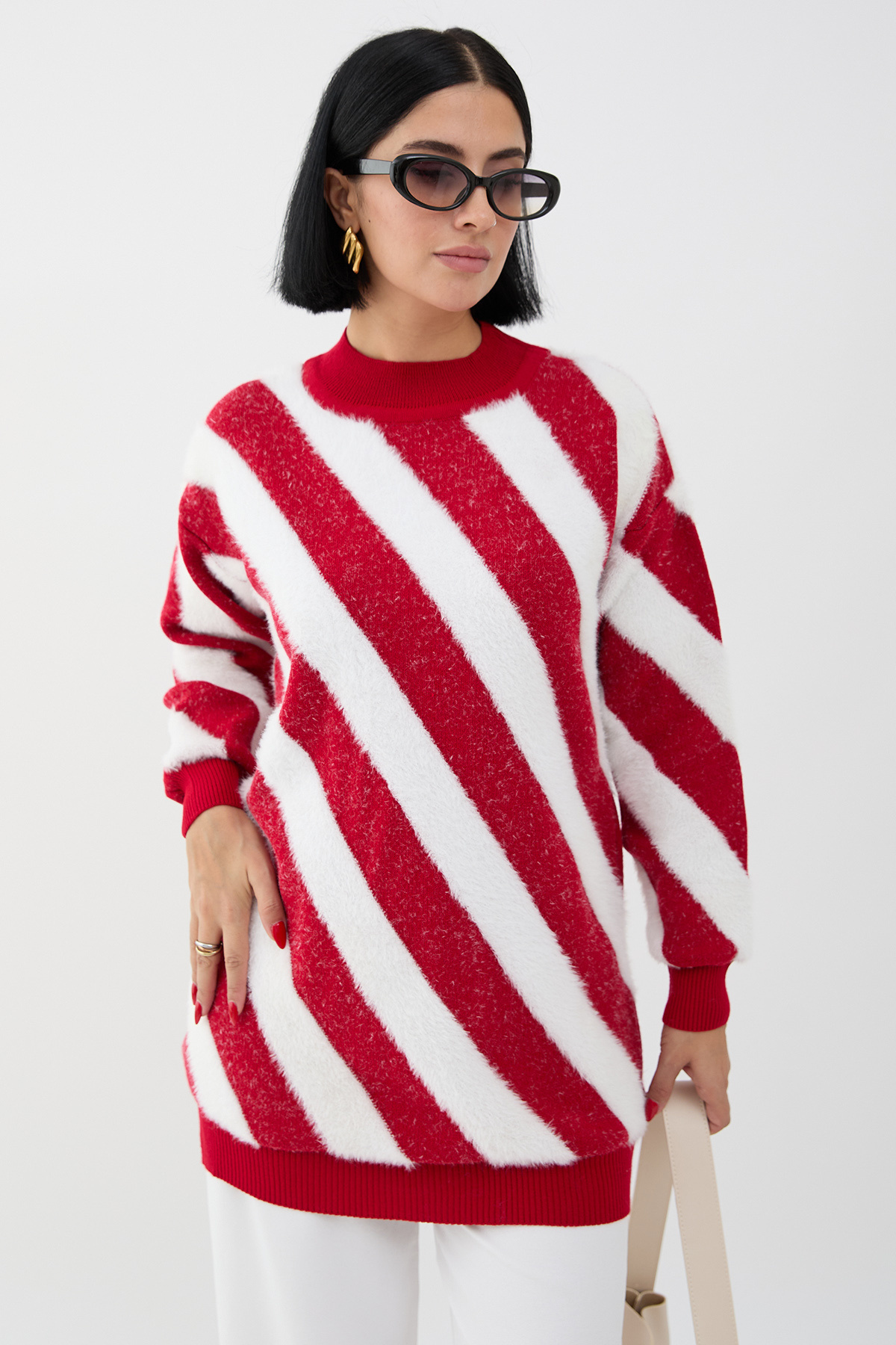 InStyle Yumoş Çift Şeritli Kırmızı Triko Kazak
