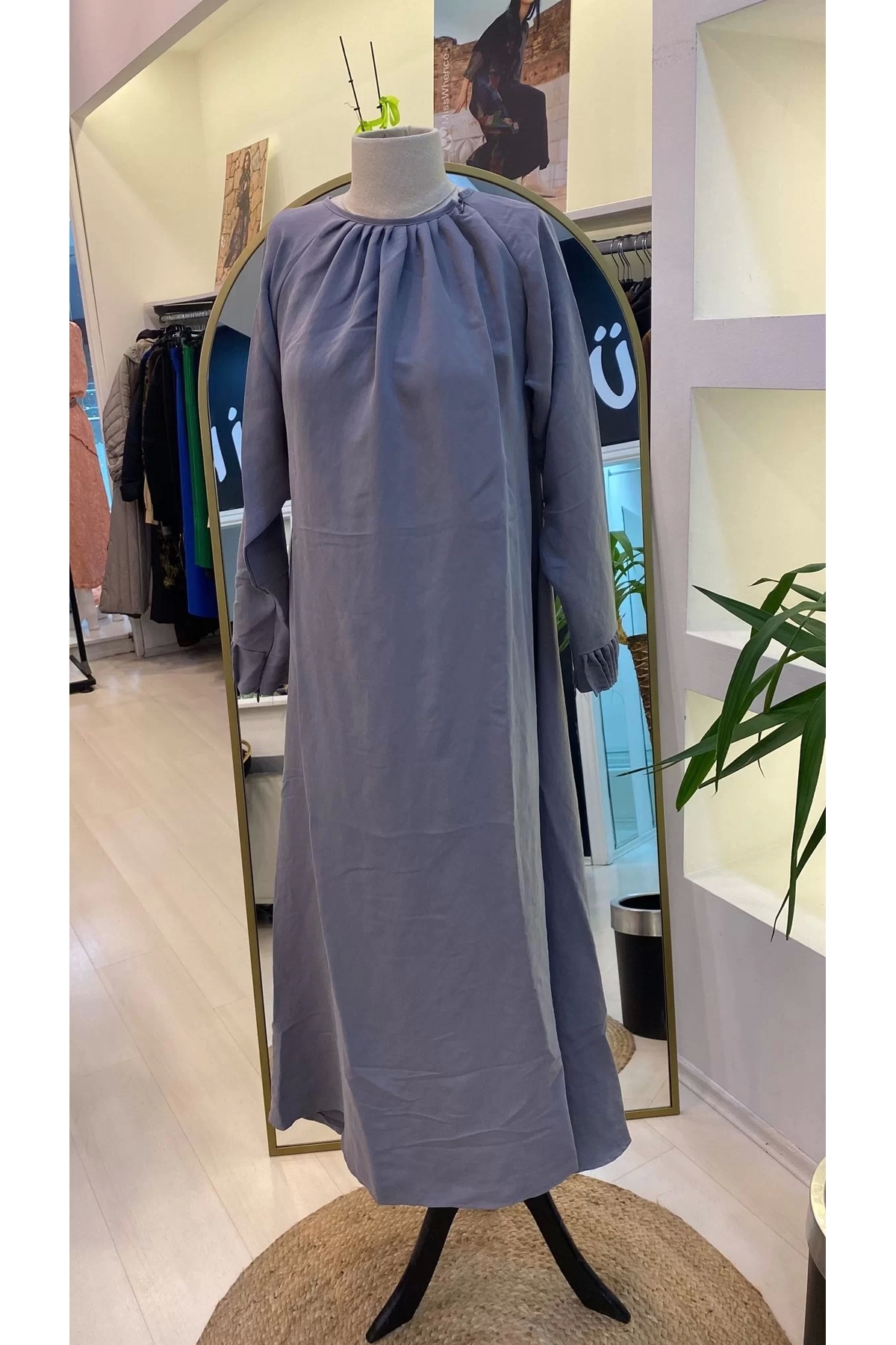 Invee İNVEE YAKA VE KOL DATAYLİ ELBİSE GRİ6964
