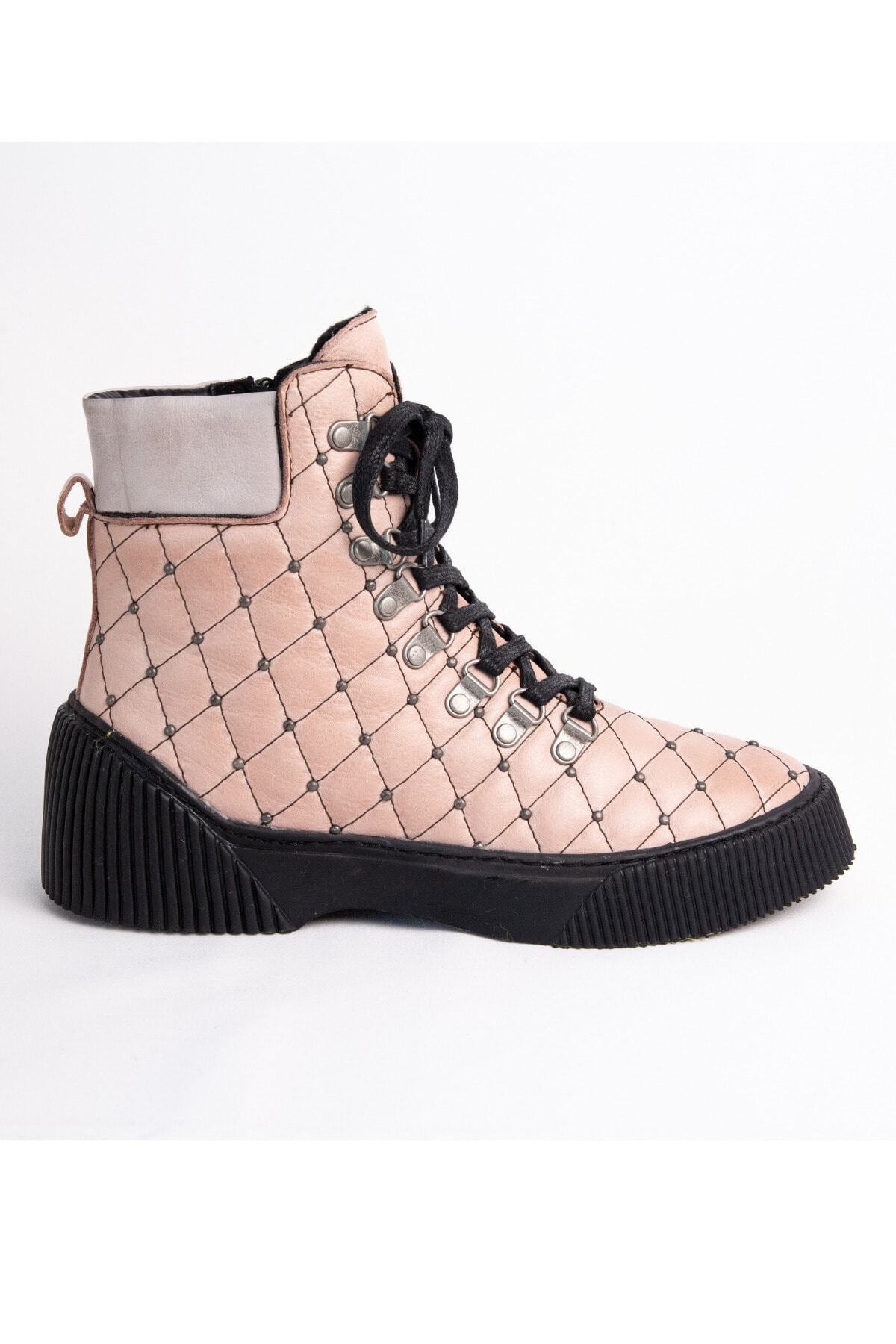 İNZE AYAKKABI Pudra Hakiki Deri Bot- Model Isim Gökçen