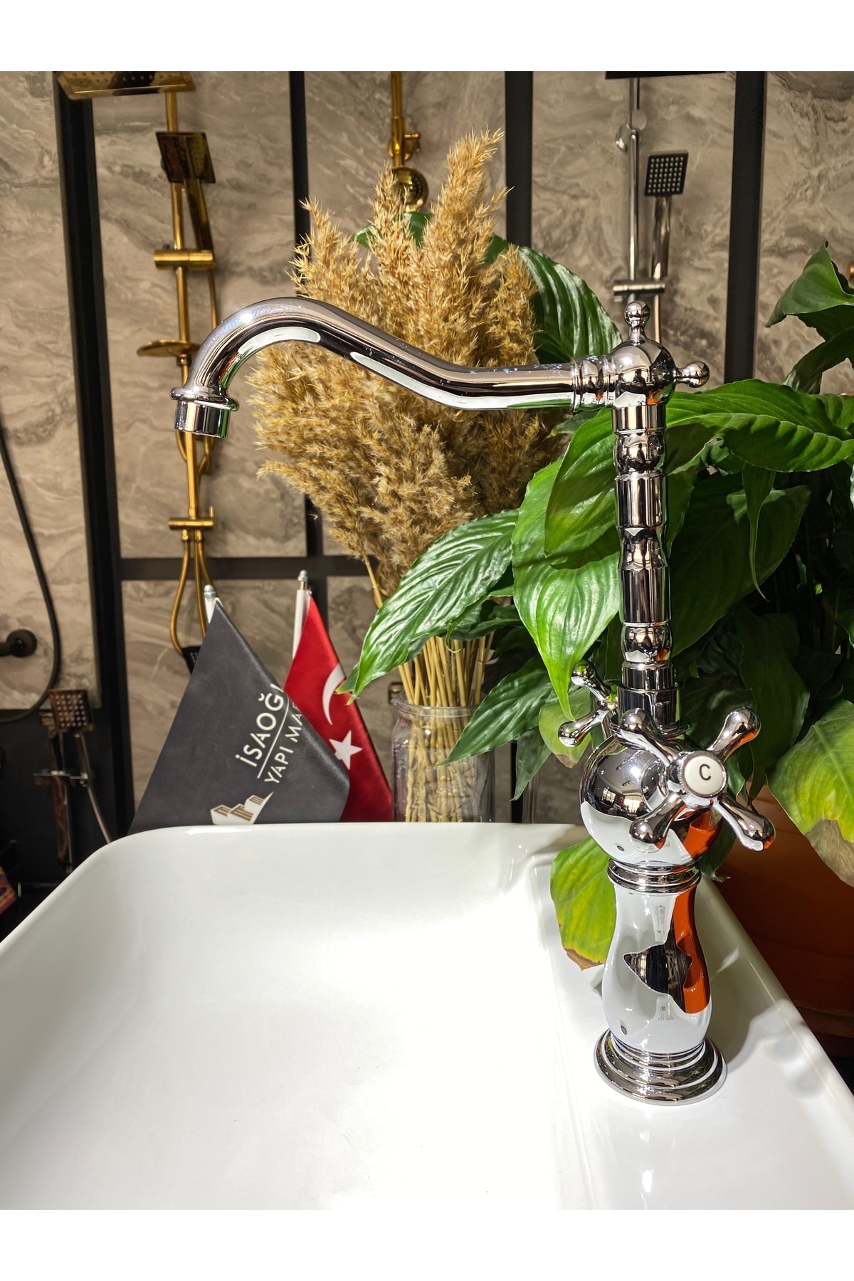İSAOĞLU YAPI Rustik Mutfak Bataryası Gümüş Evye Musluğu Avantgarde Tasarım Aç Kapa Sistem Mutfak Bataryası
