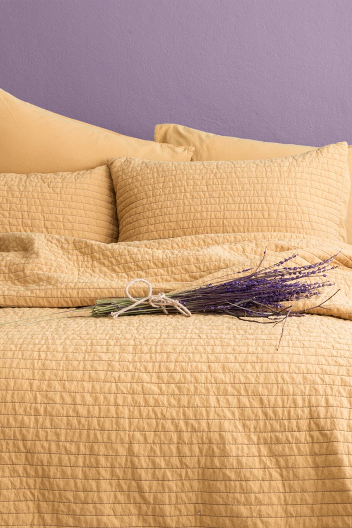 İssimo Home Savanna Hardal Tek Kişilik %100 Pamuk Poplin Yıkanmış Yatak Örtüsü Seti