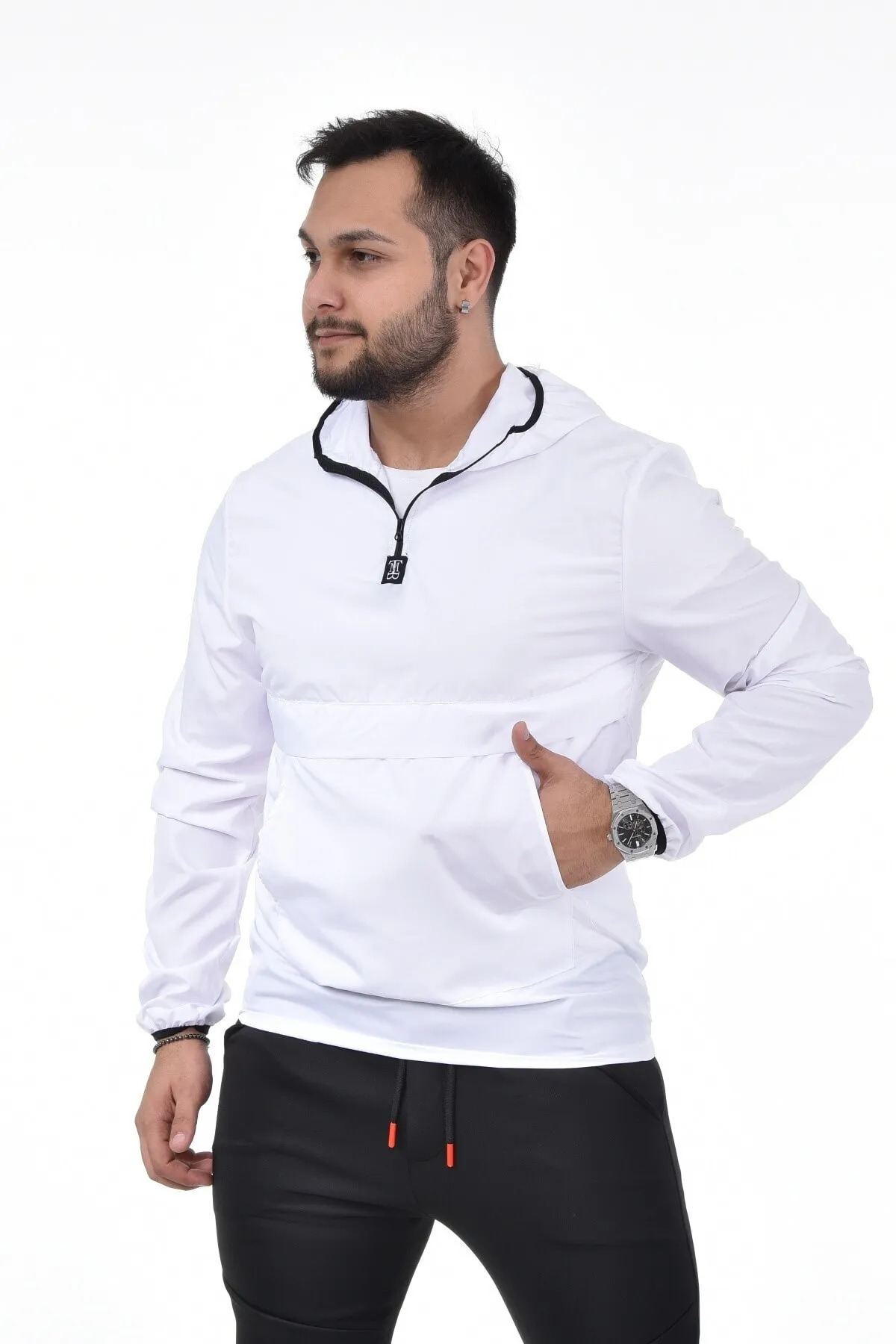 ixir İxir Kanguru Cepli Yağmurluk Beyaz Düz