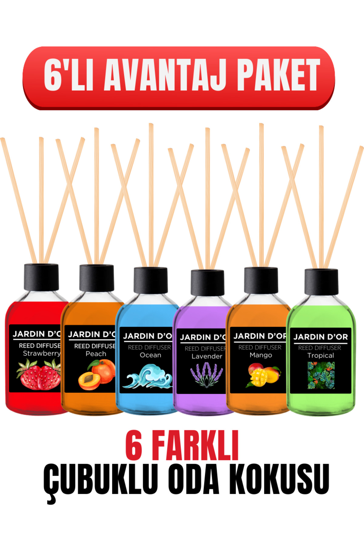 JARDIN D'OR 6'lı İndirim Seti Çubuklu Oda Kokusu 50 Reed Diffuser 50 ml x 6 adet