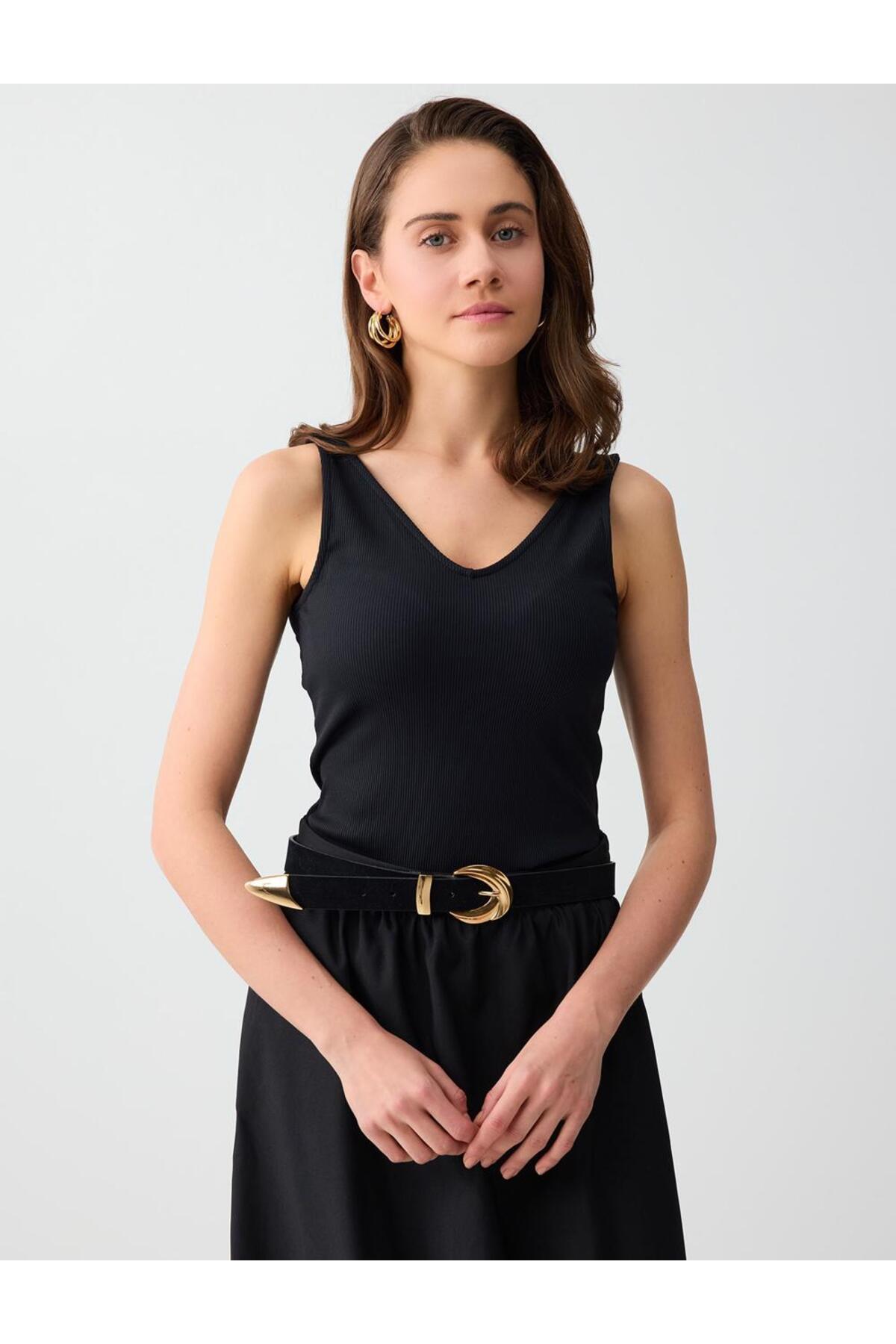 Jimmy Key Siyah Dar Kesim V Yaka Basic Örme Atlet Özellikleri