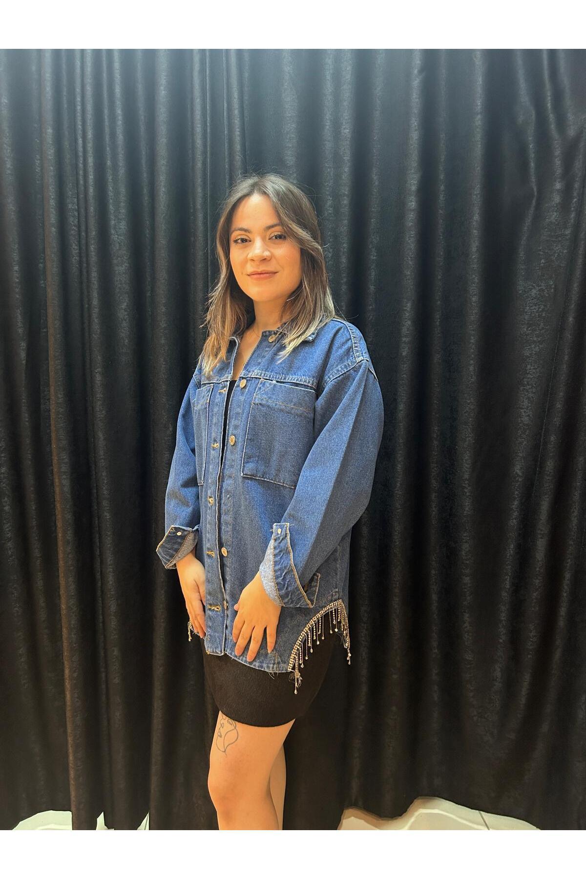 JNX taşlı kot gömlek