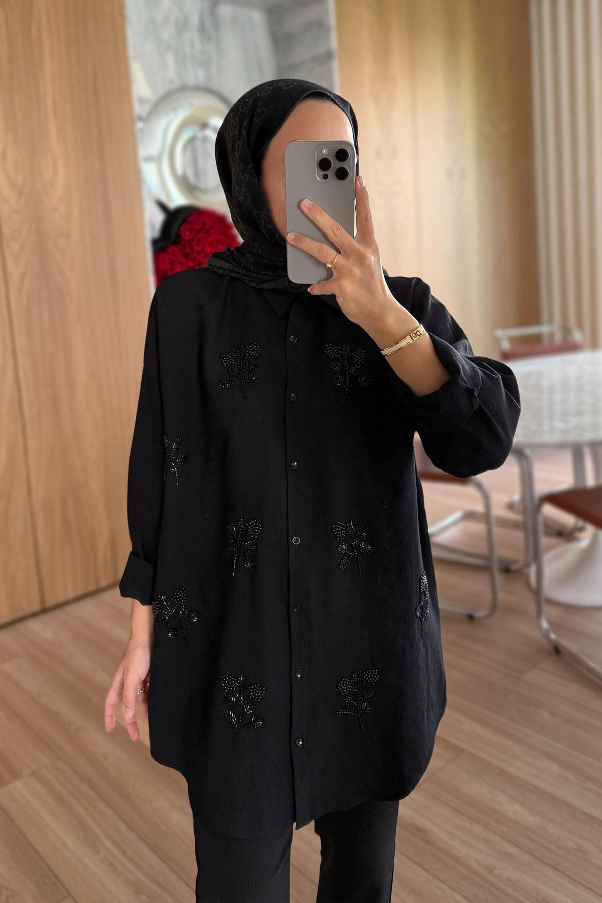 Ka Hijab Seul Çiçek İşleme Gömlek - Siyah Özellikleri