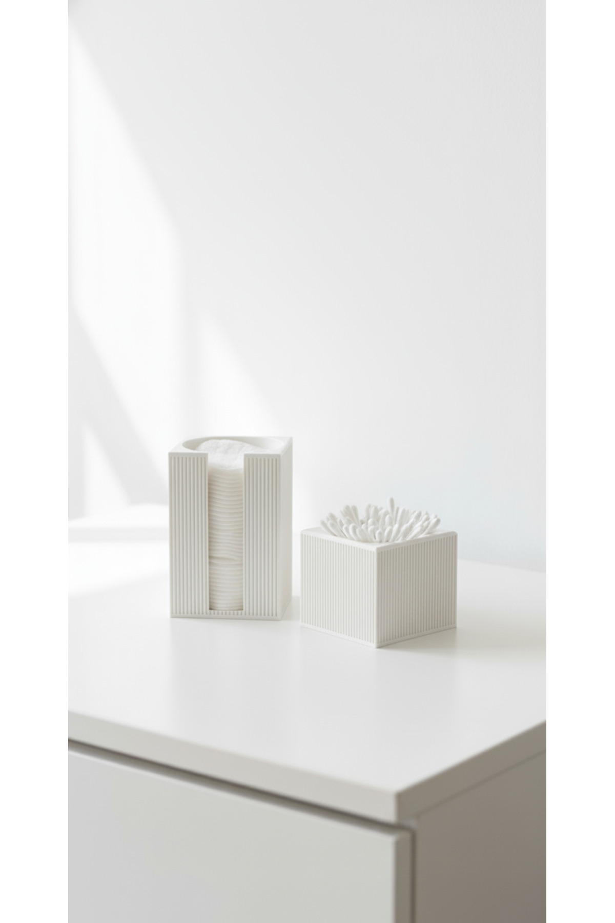 Kafs Store Modern Banyo Organizer Seti – Pamuk ve Kulak Çubuğu Kutusu
