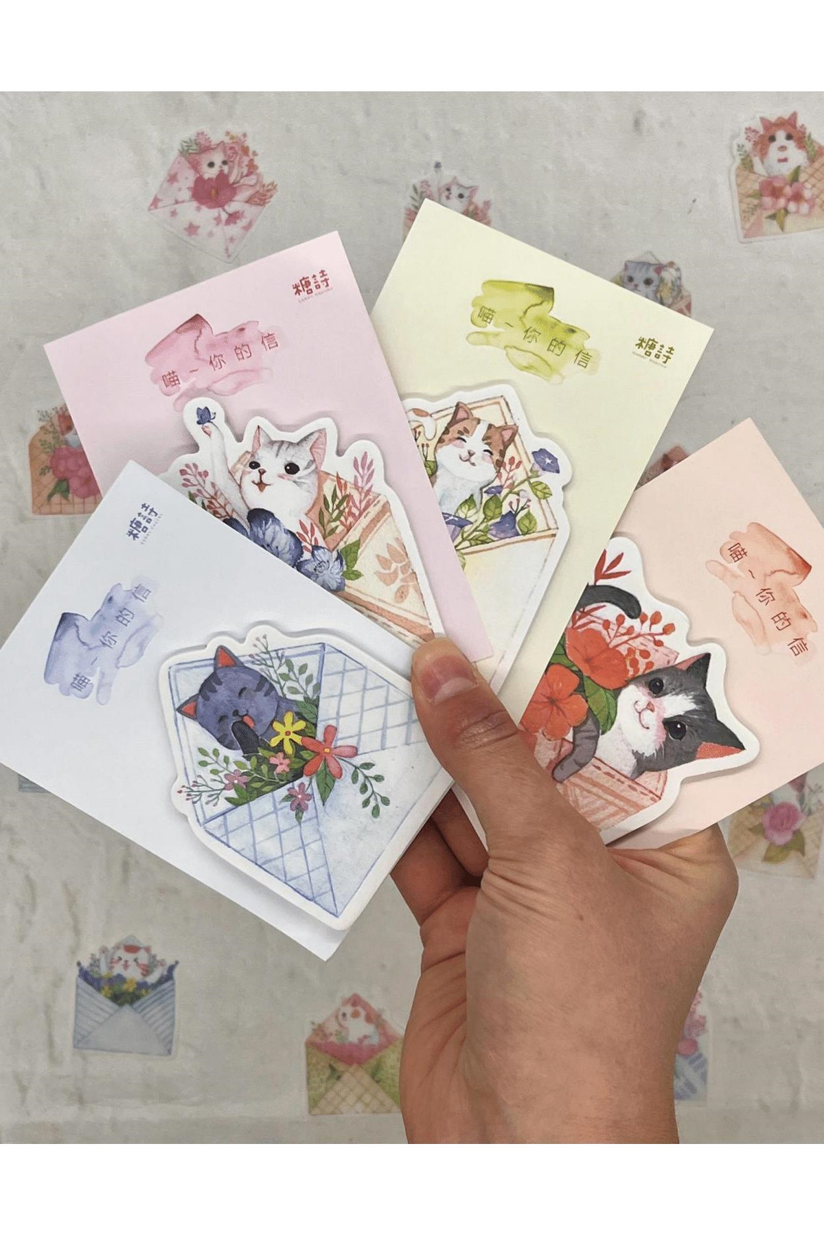 Kağıt Gemi Dükkan Sevimli Kedi Desenli 4'lü Post-it Seti/Sticky Note/Yapışkanlı Not Kağıdı/Bullet Journal