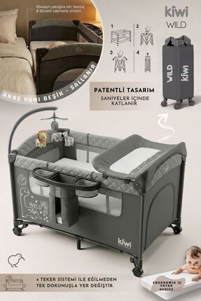 Kiwi Neonest Anne Yanı Kalın Yataklı Cibinlikli Ve Tenteli, Sallanır. Portatif Sepet Beşik Yeni Vizon