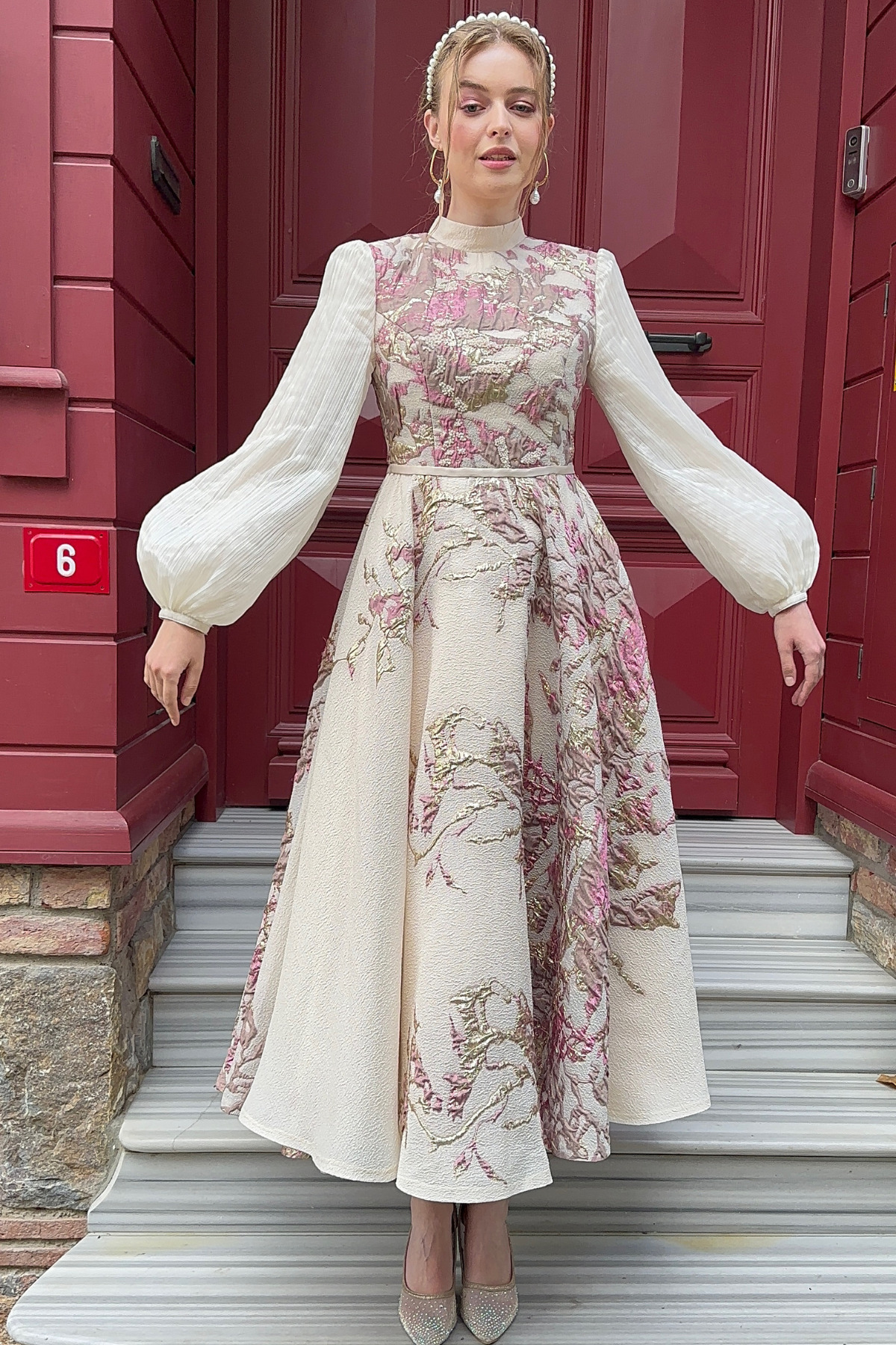 KALELİO DESİGN İpek Brokar Midi Boy Davet Elbisesi