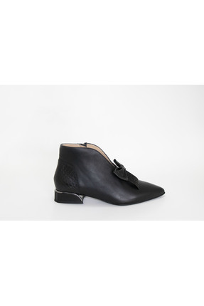 WONDY LADY Siyah Deri Bot Önden Fermuar