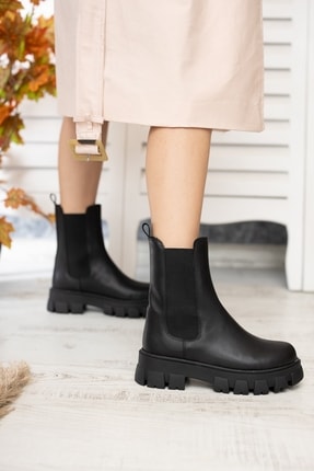 BeBeQ Store Morgan Siyah Mat Kalın Tabanlı Kadın Bot