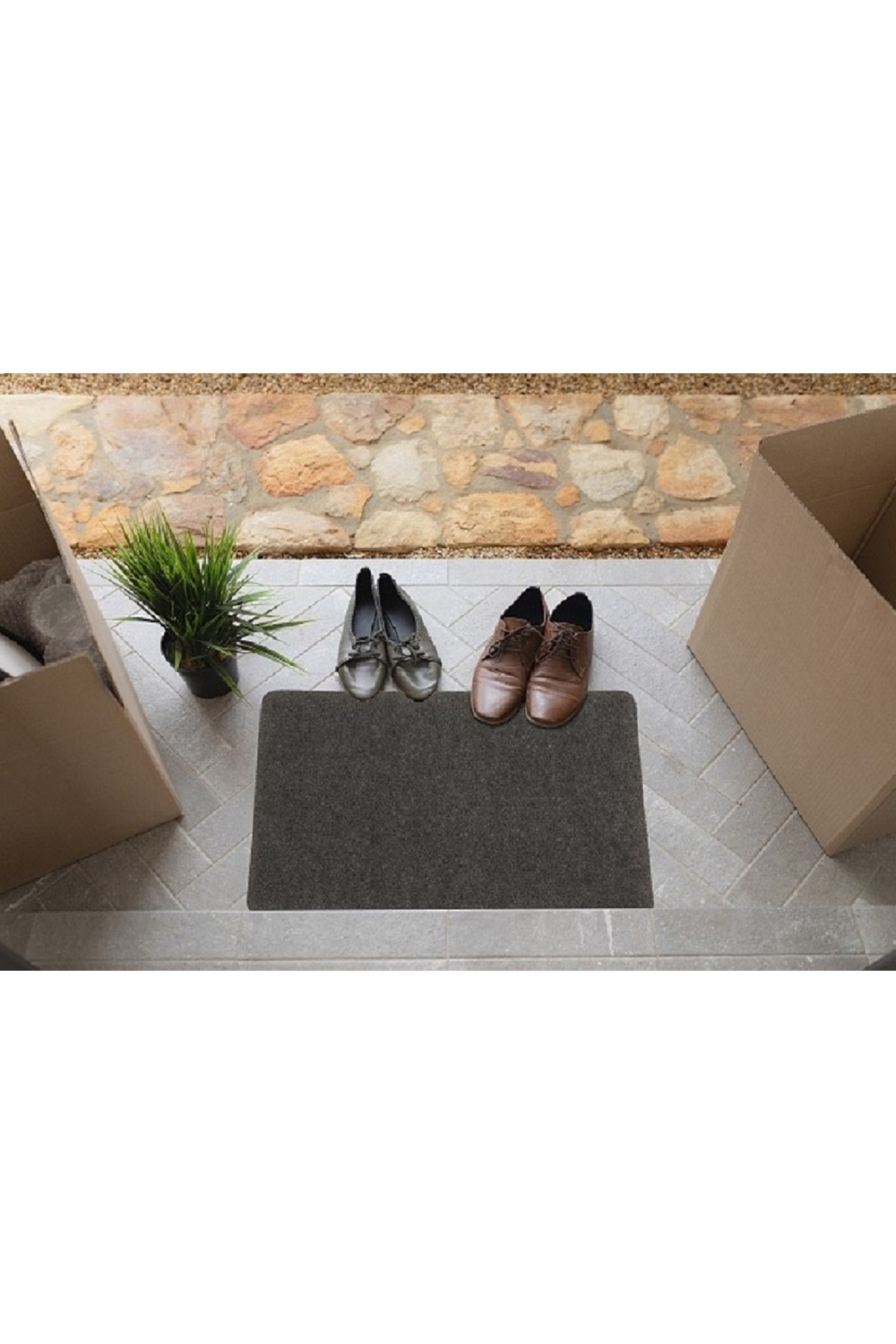 KARMAT Kapı Önü Paspası, Halılı Paspas 45*70, Gri Kapı Önü Paspası