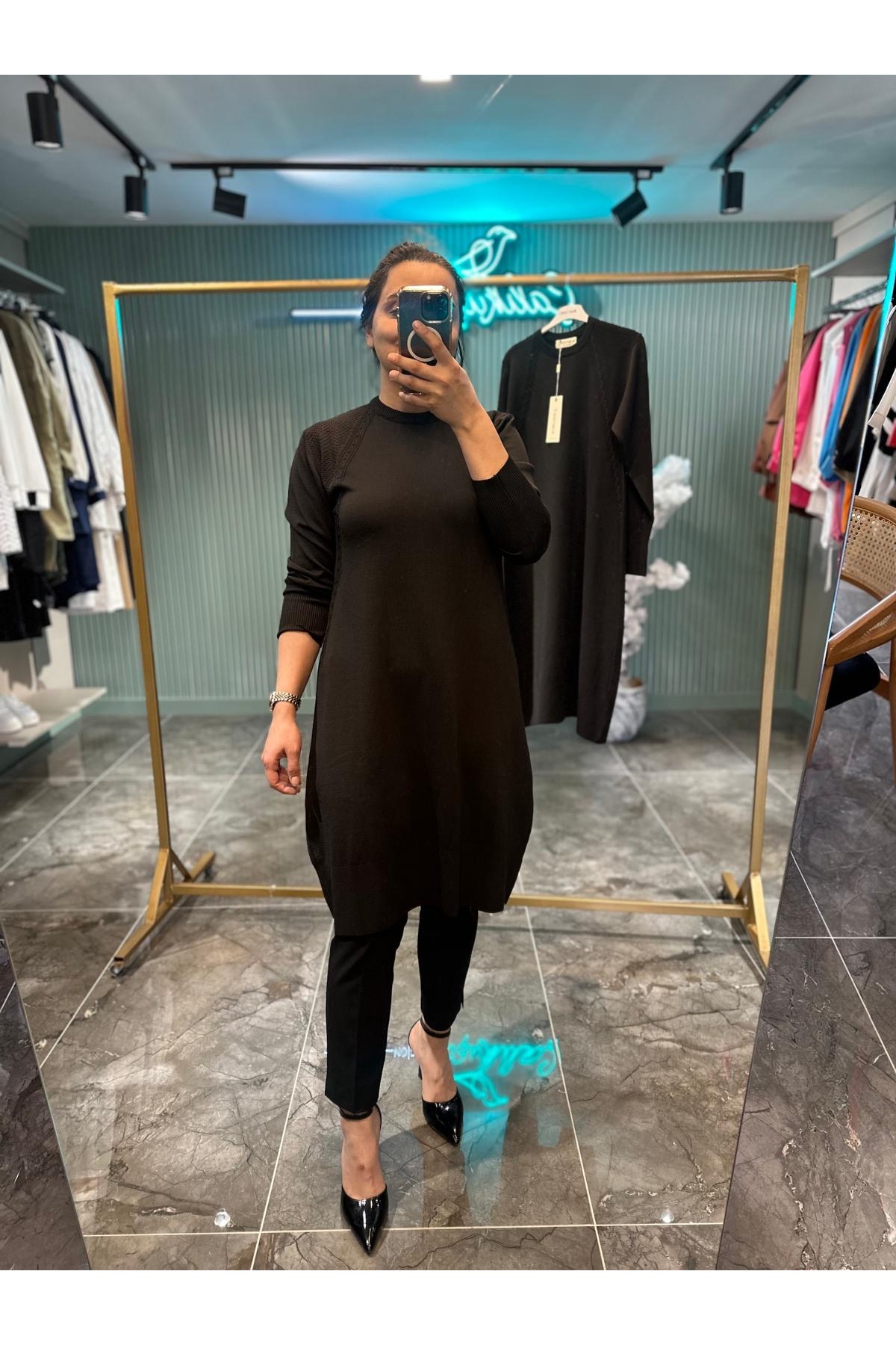 KARTON ÖRME SİYAH ELBİSE