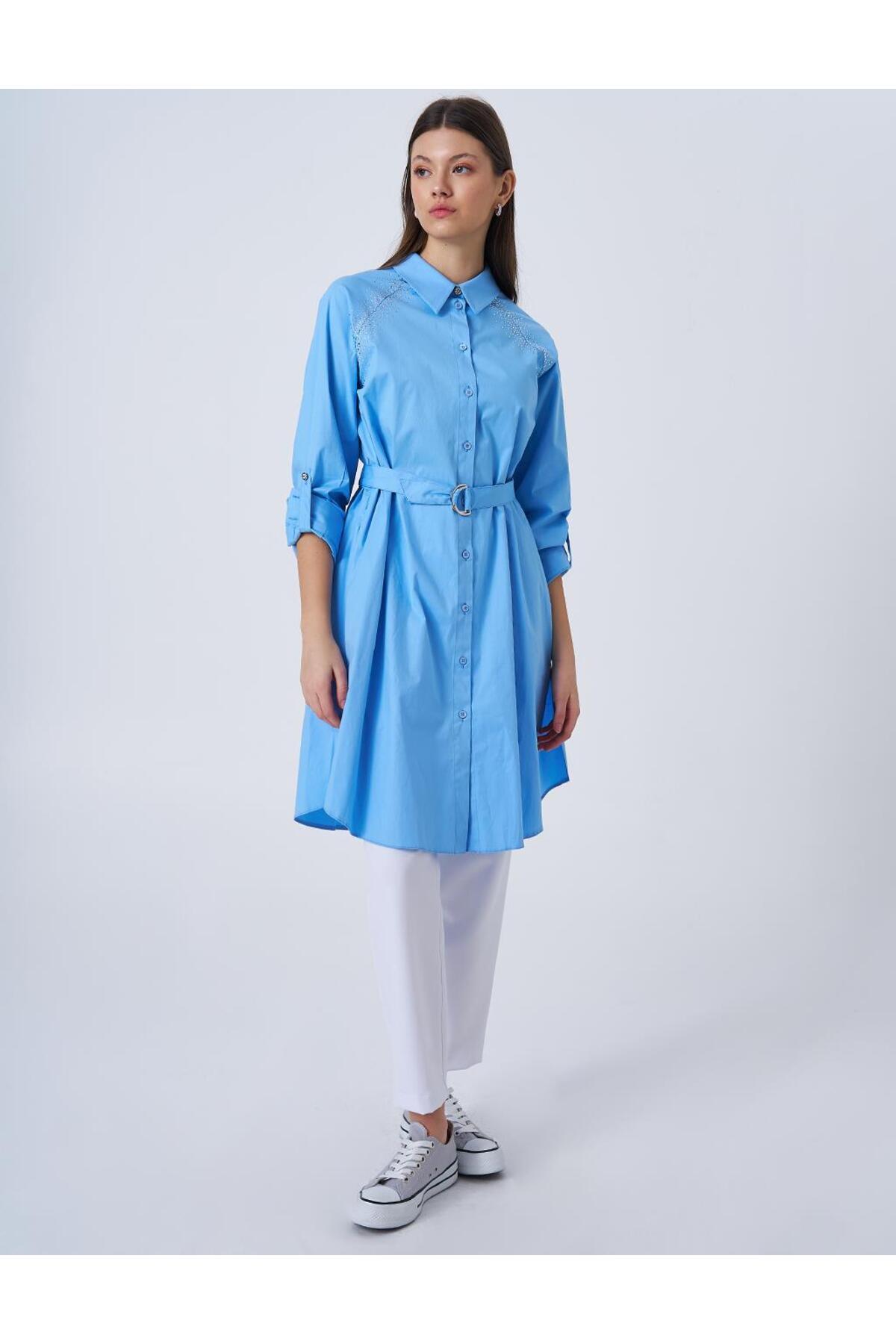 Kayra Hotfix Baskılı Pamuklu Tunik Toz Duman
