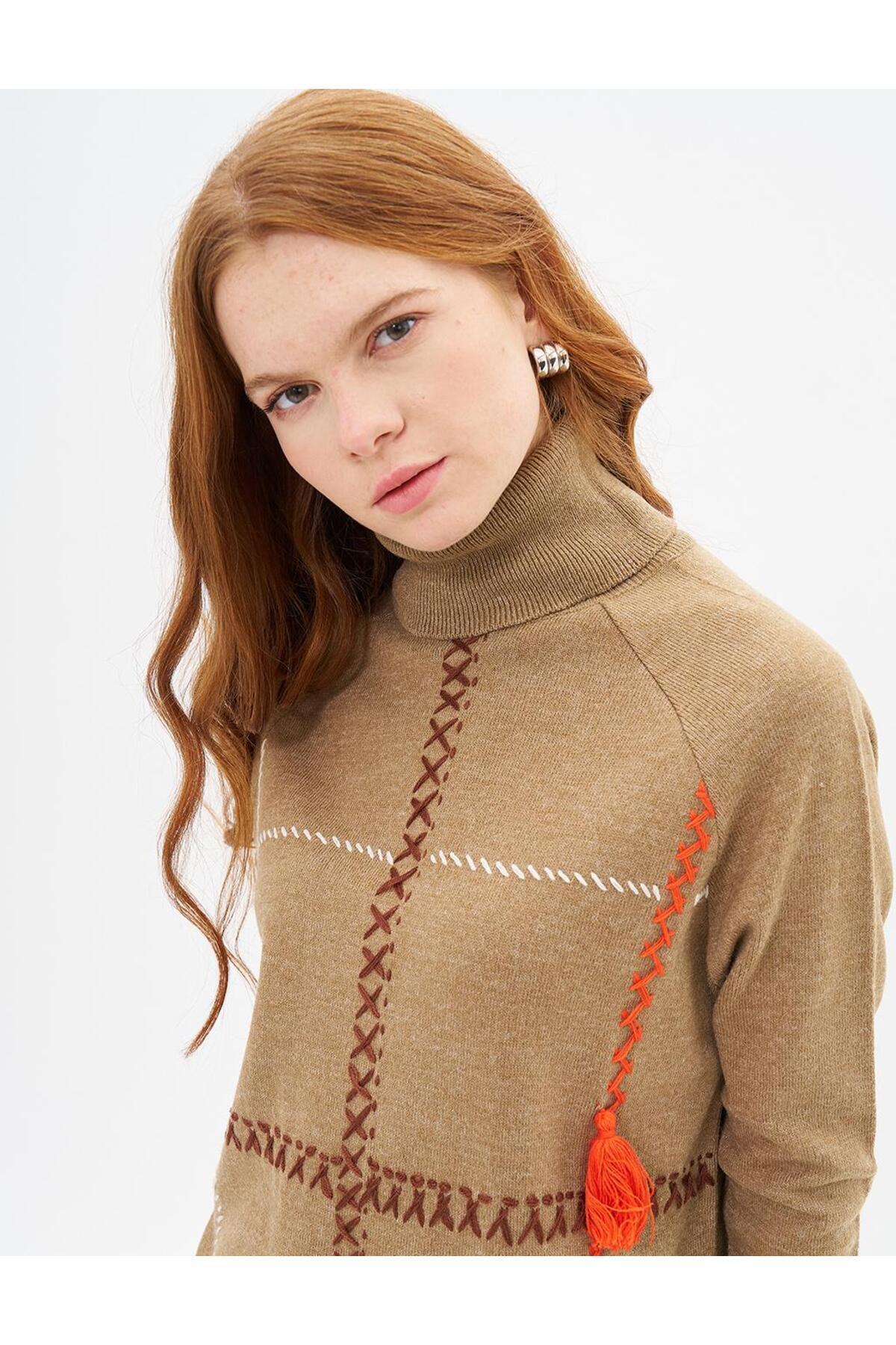 Kayra Nakış İşlemeli Triko Tunik Sütlü Kahve Özellikleri
