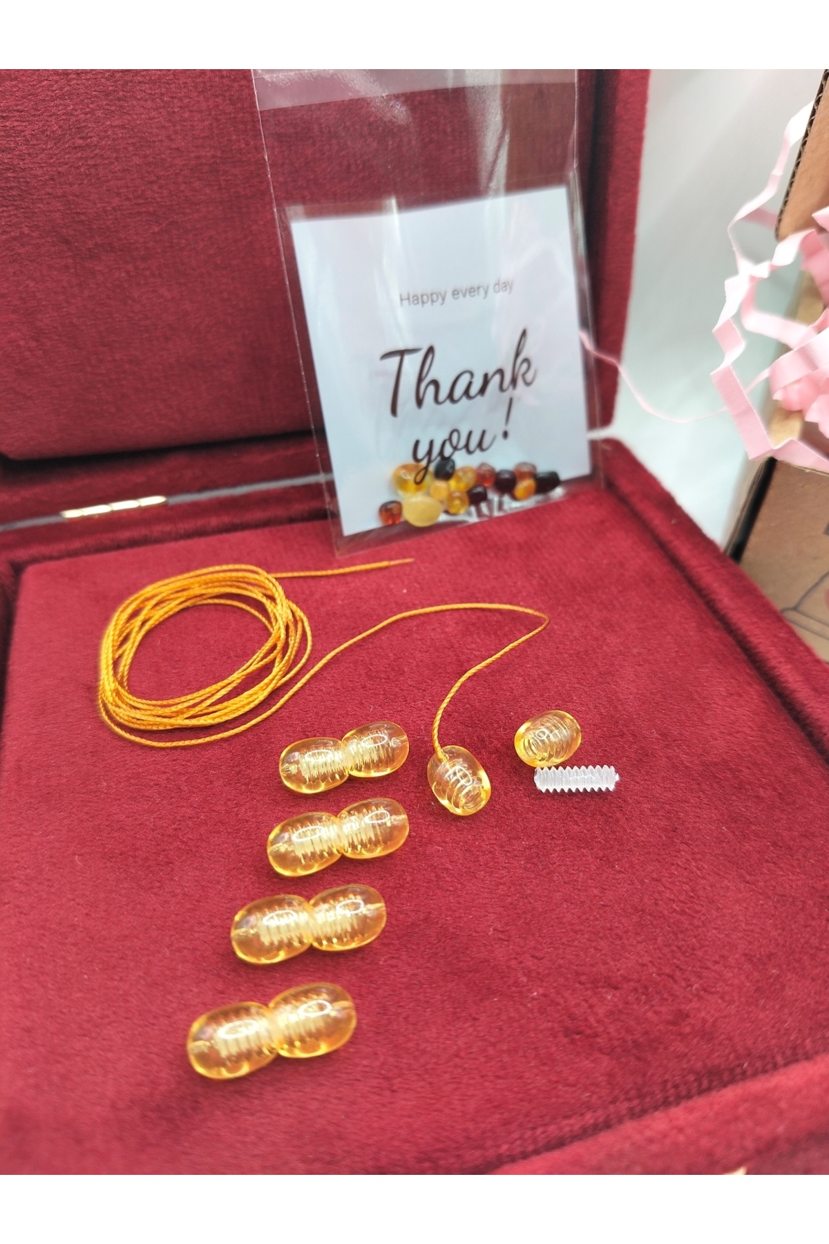 KehribarCo Kehribar Tamir Kiti 5 Adet Klips 100 cm ip ve Kehribar Taneleri - Klips Limon Sarı Siyah
