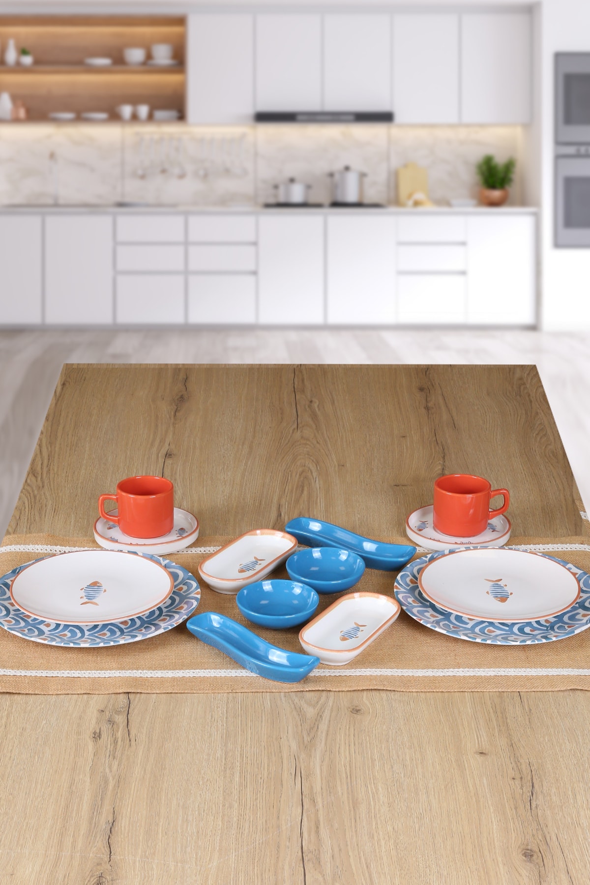 Keramika 2 Kişilik 14 Parça Koi Kahvaltı Seti Mavi
