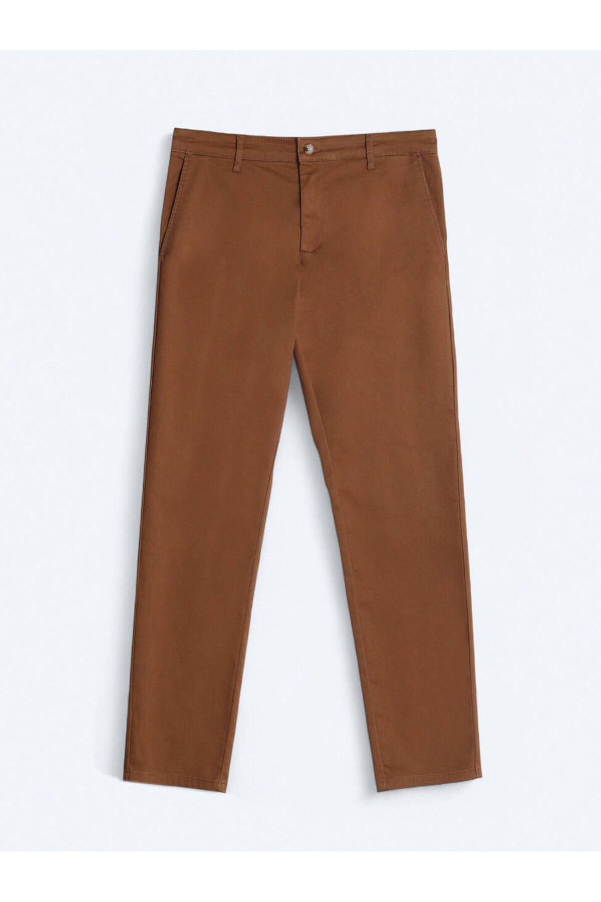 Kip Deve Tüyü Düz Dokuma Regular Fit Casual Pamuk Karışımlı Pantolon