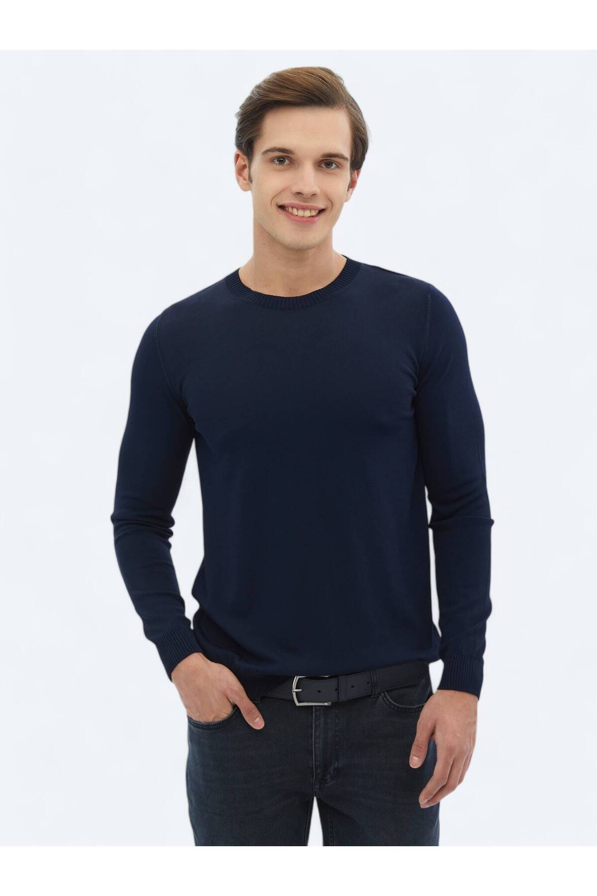 Kip Lacivert Bisiklet Yaka Düz Örgü Triko Kazak Özellikleri