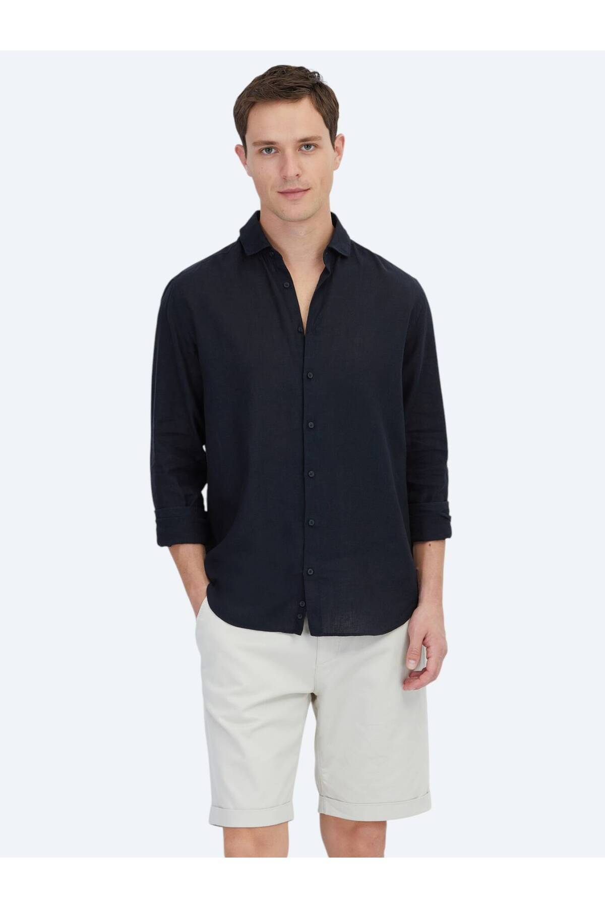 Kip Siyah Düz Regular Fit Dokuma Casual Pamuk Karışımlı Gömlek Özellikleri