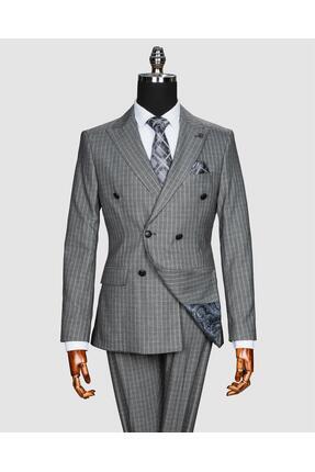 Genel Markalar Kadın Çift Düğmeli Saten Yaka Takım Elbise